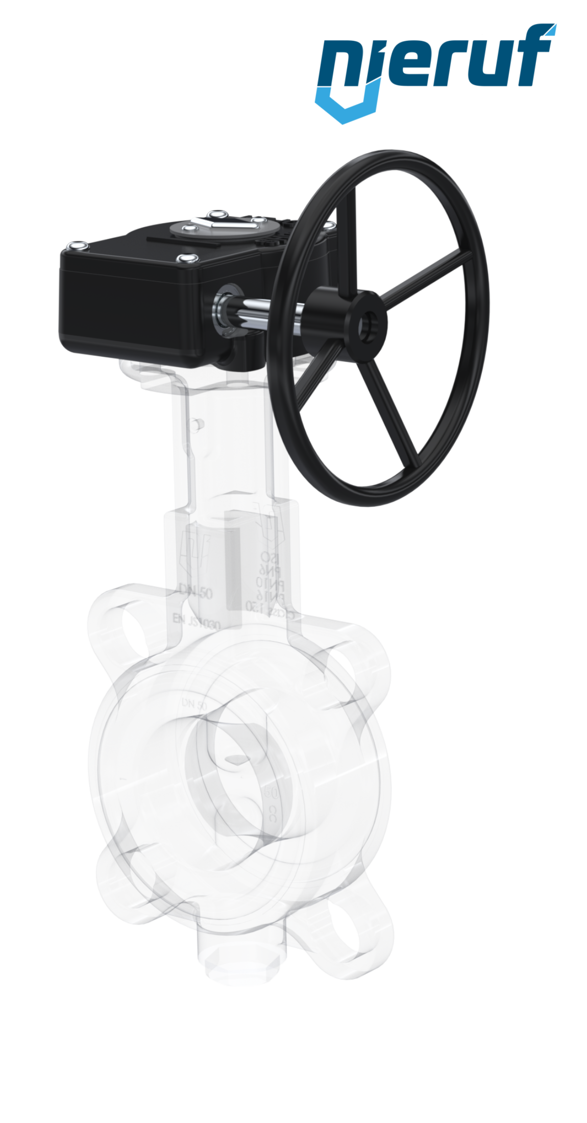 Przepustnica DN 40 PN6-PN10-PN16 & ANSI150 międzykołnierzowa/Wafer korpus z żeliwa sferoidalnego z przekładnią ślimakową NBR-70-czarny DVGW Gaz