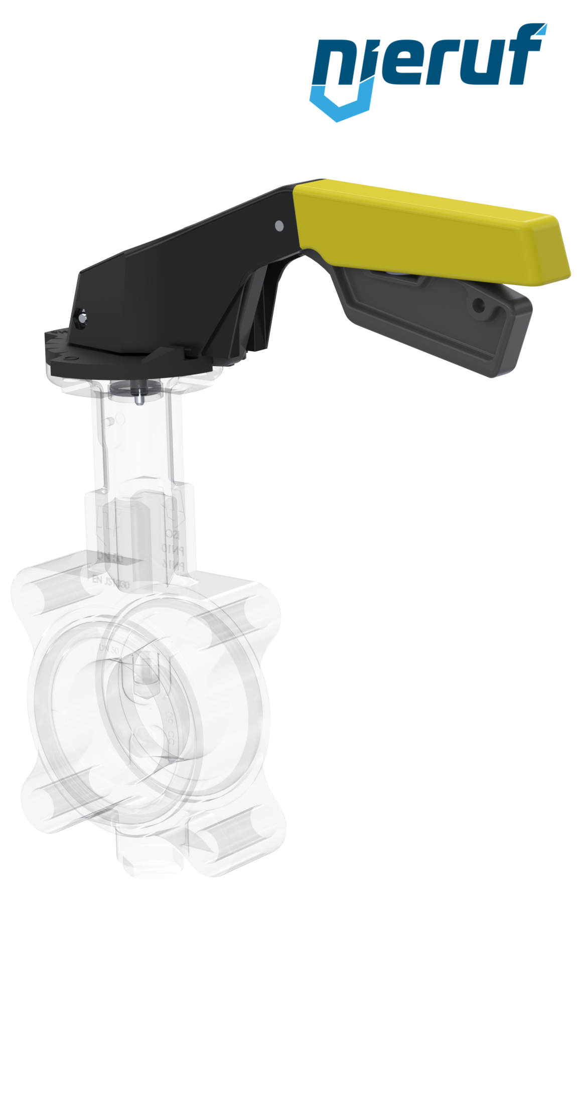 Przepustnica DN 40 PN10-PN16 dokołnierzowa/Lug korpus z żeliwa sferoidalnego z żółtą dźwignią ręczną NBR-70-czarny DVGW Gaz