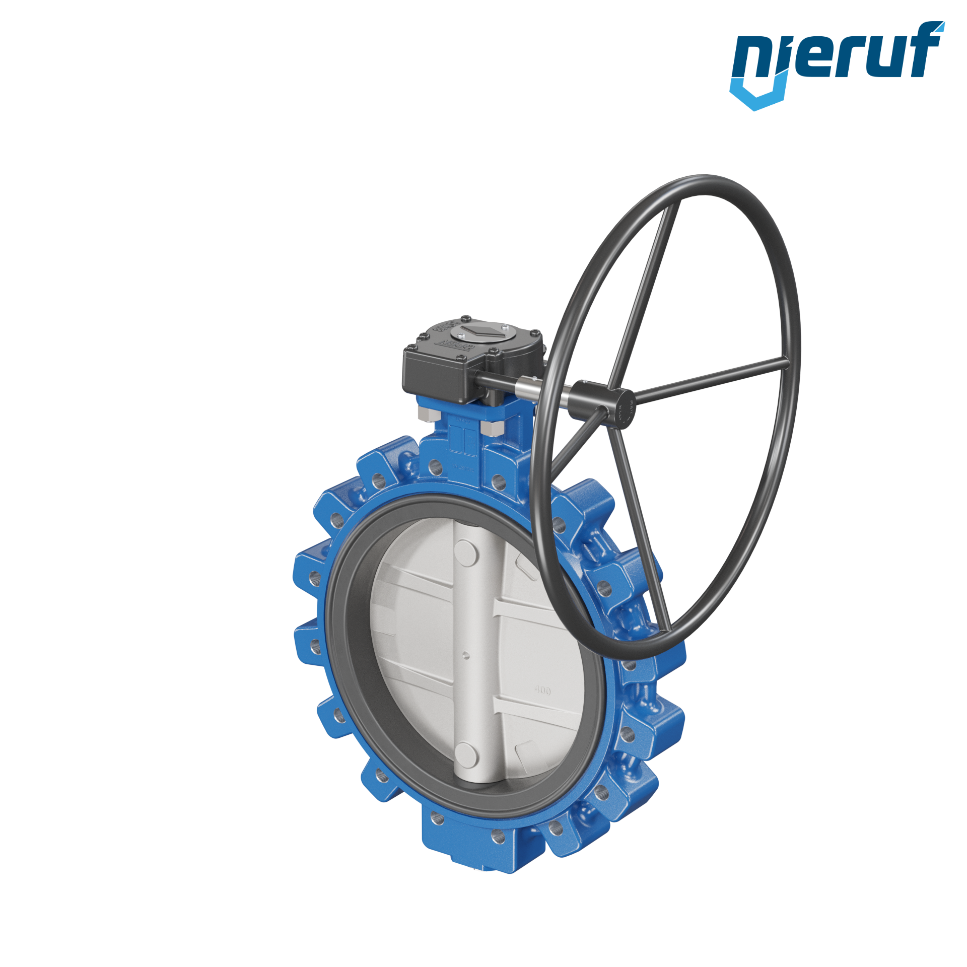 Przepustnica DN 400 PN10 dokołnierzowa/Lug korpus z żeliwa sferoidalnego z przekładnią ślimakową NBR-70-czarny DVGW Gaz
