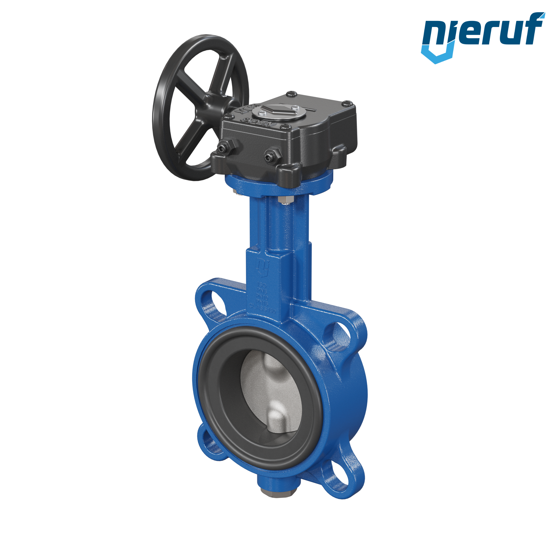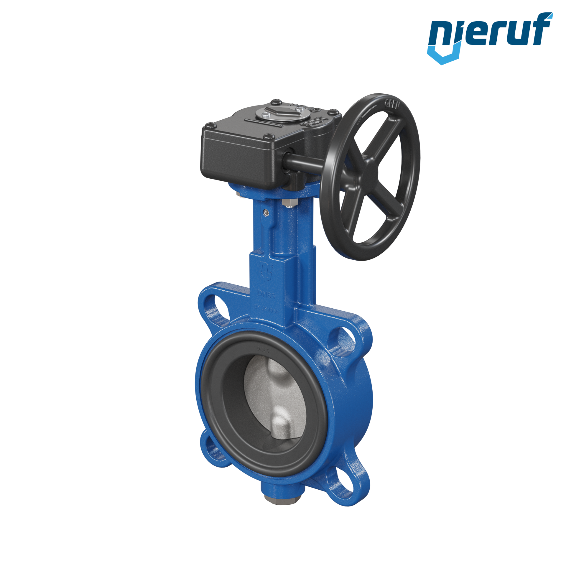 Przepustnica DN 65 PN6-PN10-PN16 & ANSI150 międzykołnierzowa/Wafer korpus z żeliwa sferoidalnego z przekładnią ślimakową NBR-70-czarny DVGW Gaz