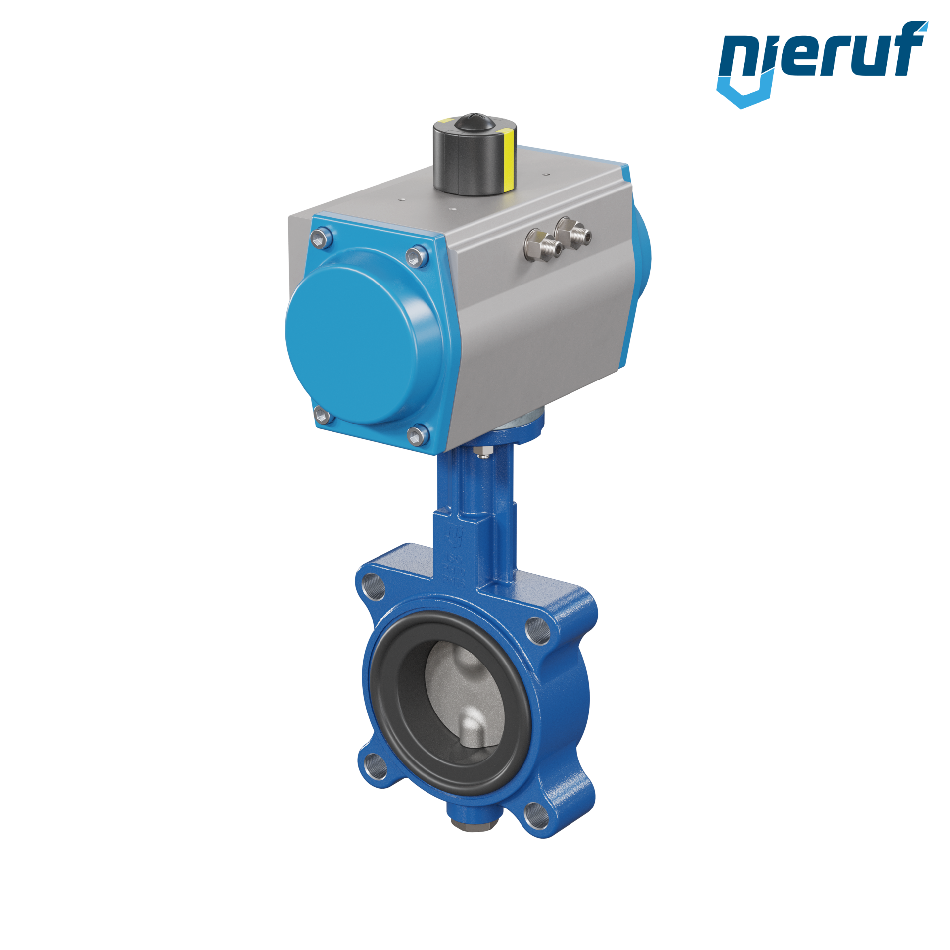 Przepustnica DN 65 PN10-PN16 dokołnierzowa/Lug korpus z żeliwa sferoidalnego z Pneumatycznym napędem obrotowym jednostronnego działania NBR-70-czarny DVGW Gaz