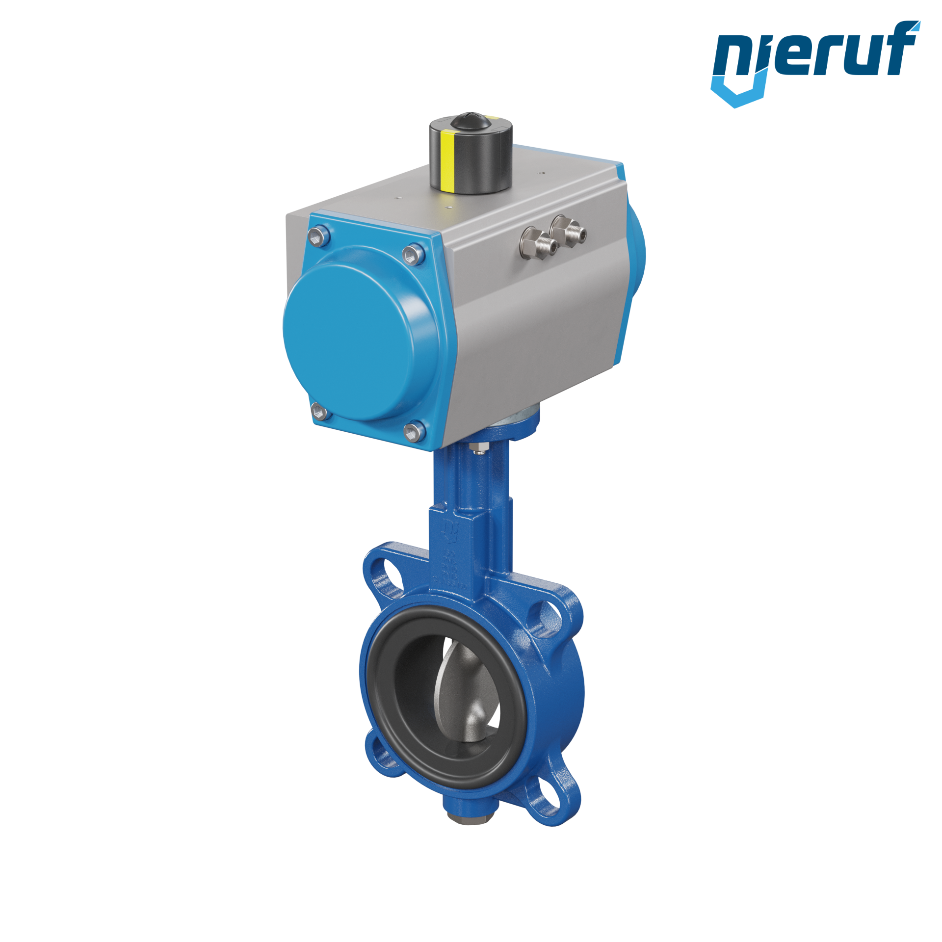 Przepustnica DN 65 PN6-PN10-PN16 & ANSI150 międzykołnierzowa/Wafer korpus z żeliwa sferoidalnego z Pneumatycznym napędem obrotowym jednostronnego działania otwierany sprężyną EPDM DVGW Woda pitna, WRAS, ACS, W270