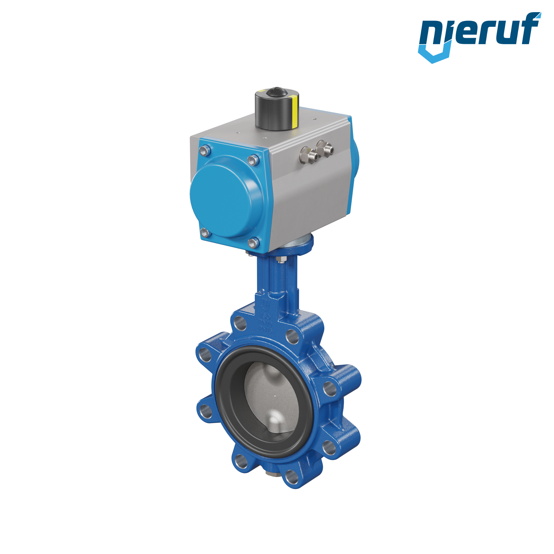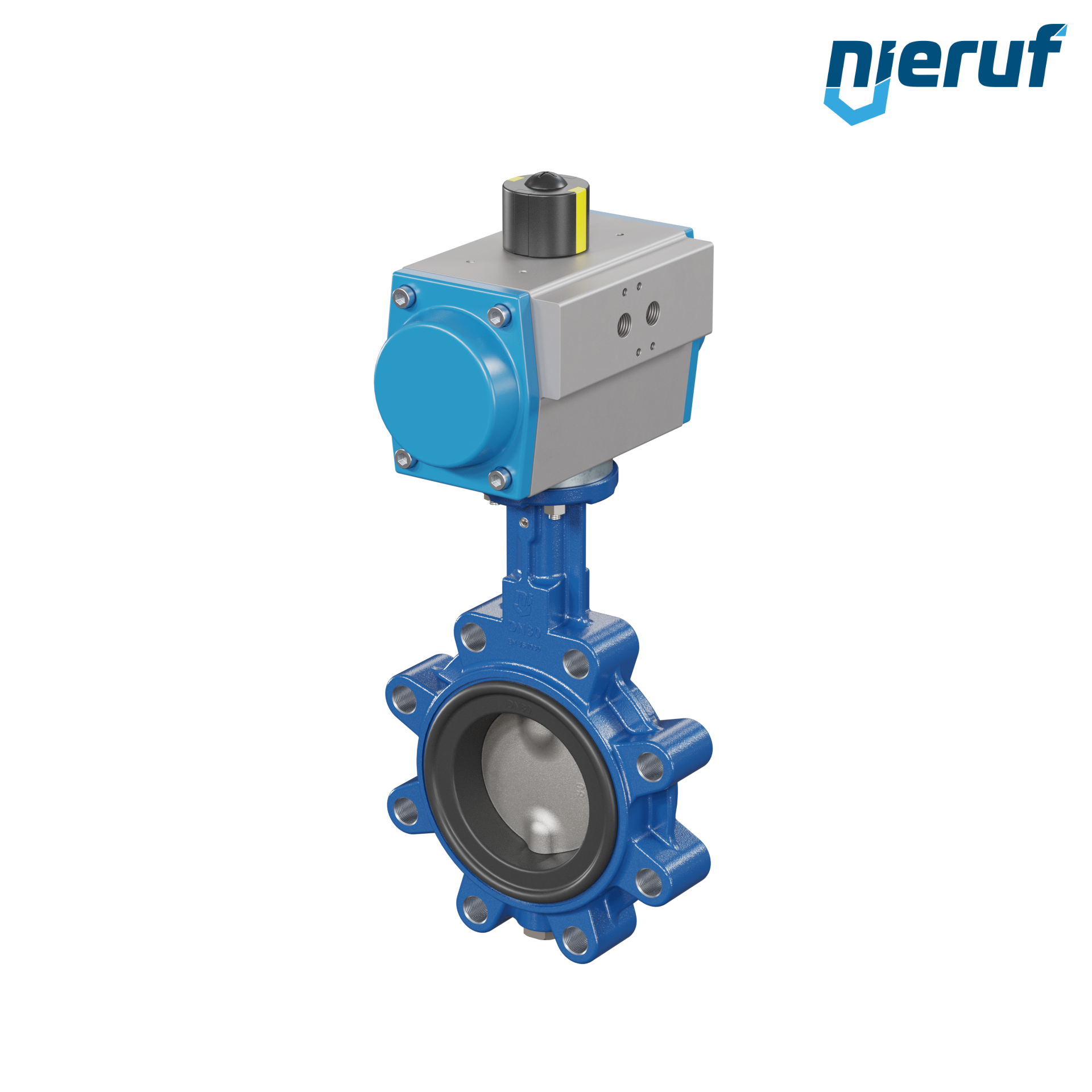 Przepustnica DN 80 PN10-PN16 dokołnierzowa/Lug korpus z żeliwa sferoidalnego z Pneumatycznym napędem obrotowym dwustronnego działania EPDM DVGW Woda pitna, WRAS, ACS, W270