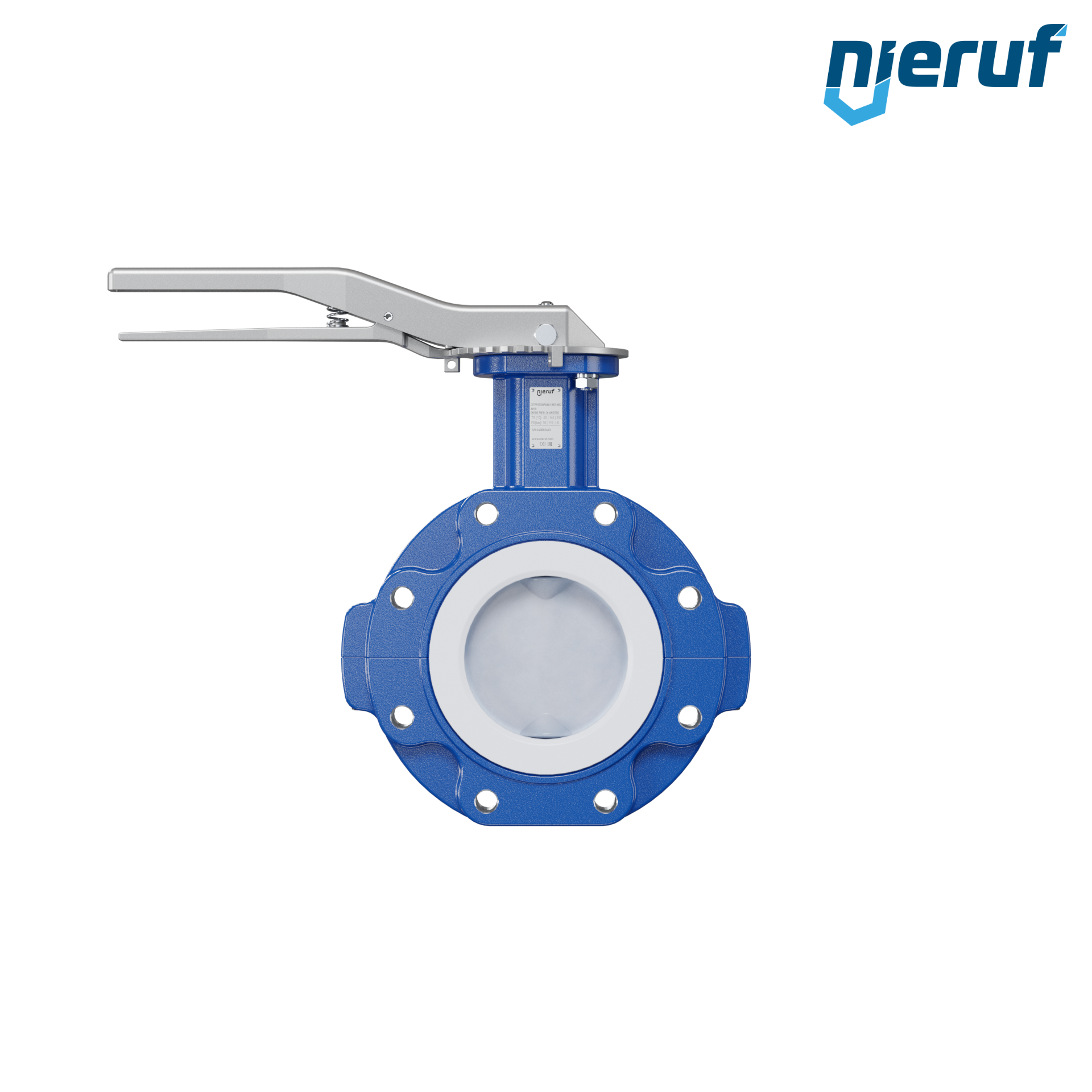 Przepustnica PFA DN100 ANSI150 Lug z dźwignią ręczną uszczelnienie z PTFE i wkladka z Silikonu do agresywnych mediów