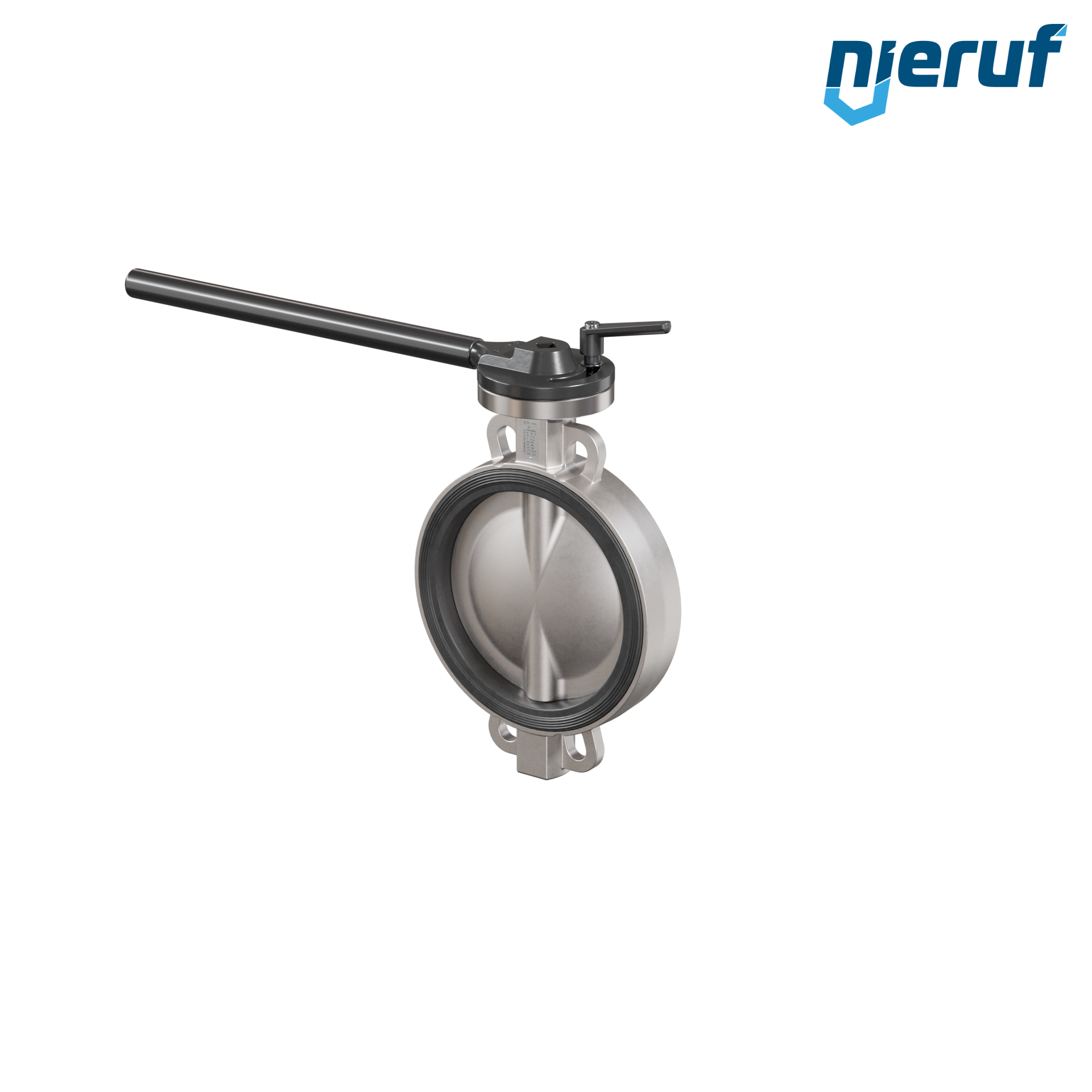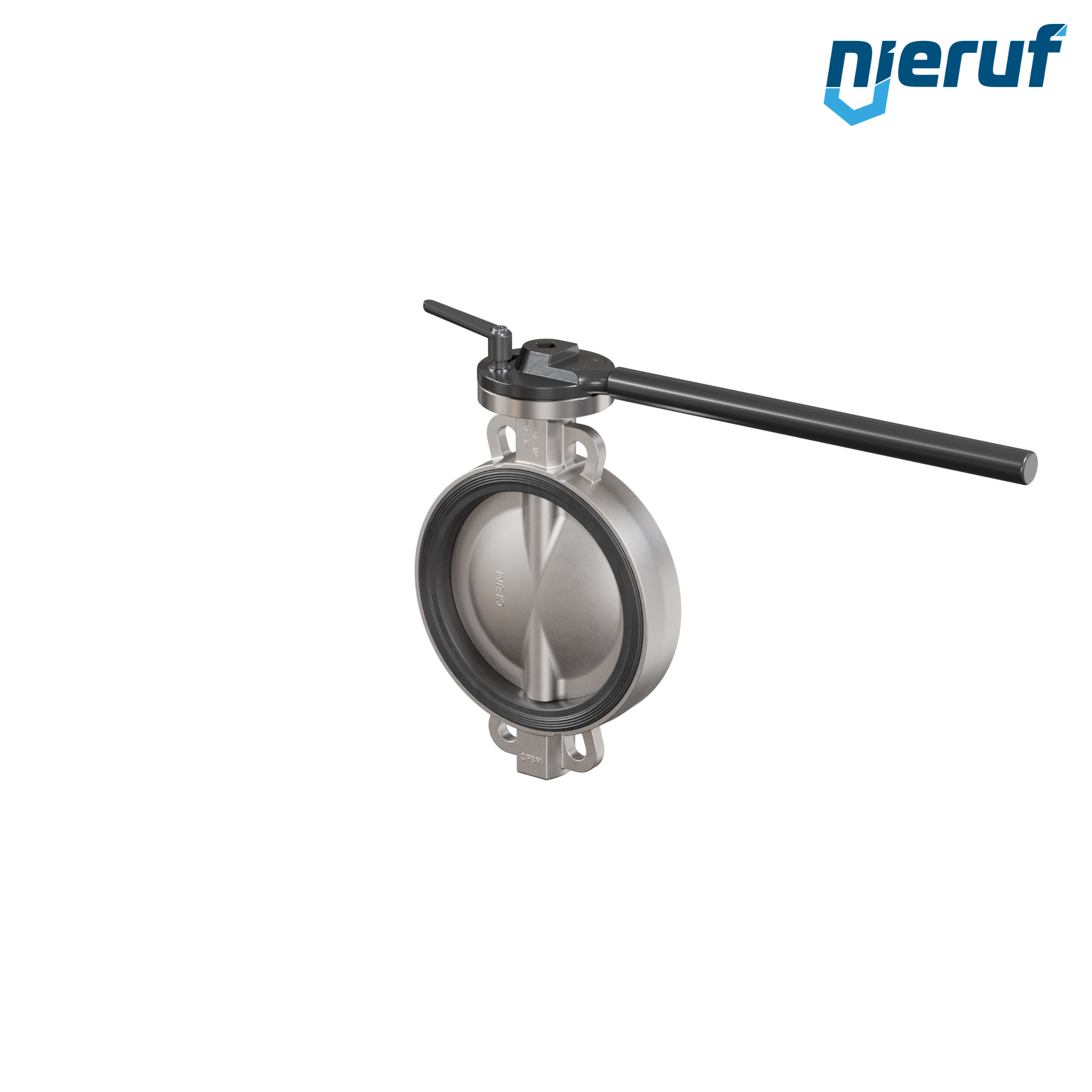 Przepustnica DN250 PN16 z otworami centrującymi, korpus i klapa ze stali nierdzewnej 1.4408, uszczelka z EPDM, z dźwignią ręczną