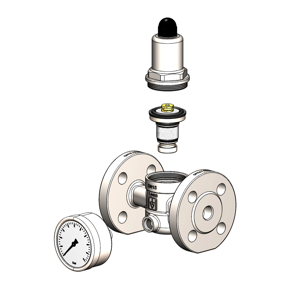 Cechy charakterystyczne produktu | Wysokiej jakości, odporna na wysoką temperaturę membrana z elastomeru z wkładką z tkaniny. Regulacja ciśnienia za pomocą niewznoszącego się wrzeciona. |