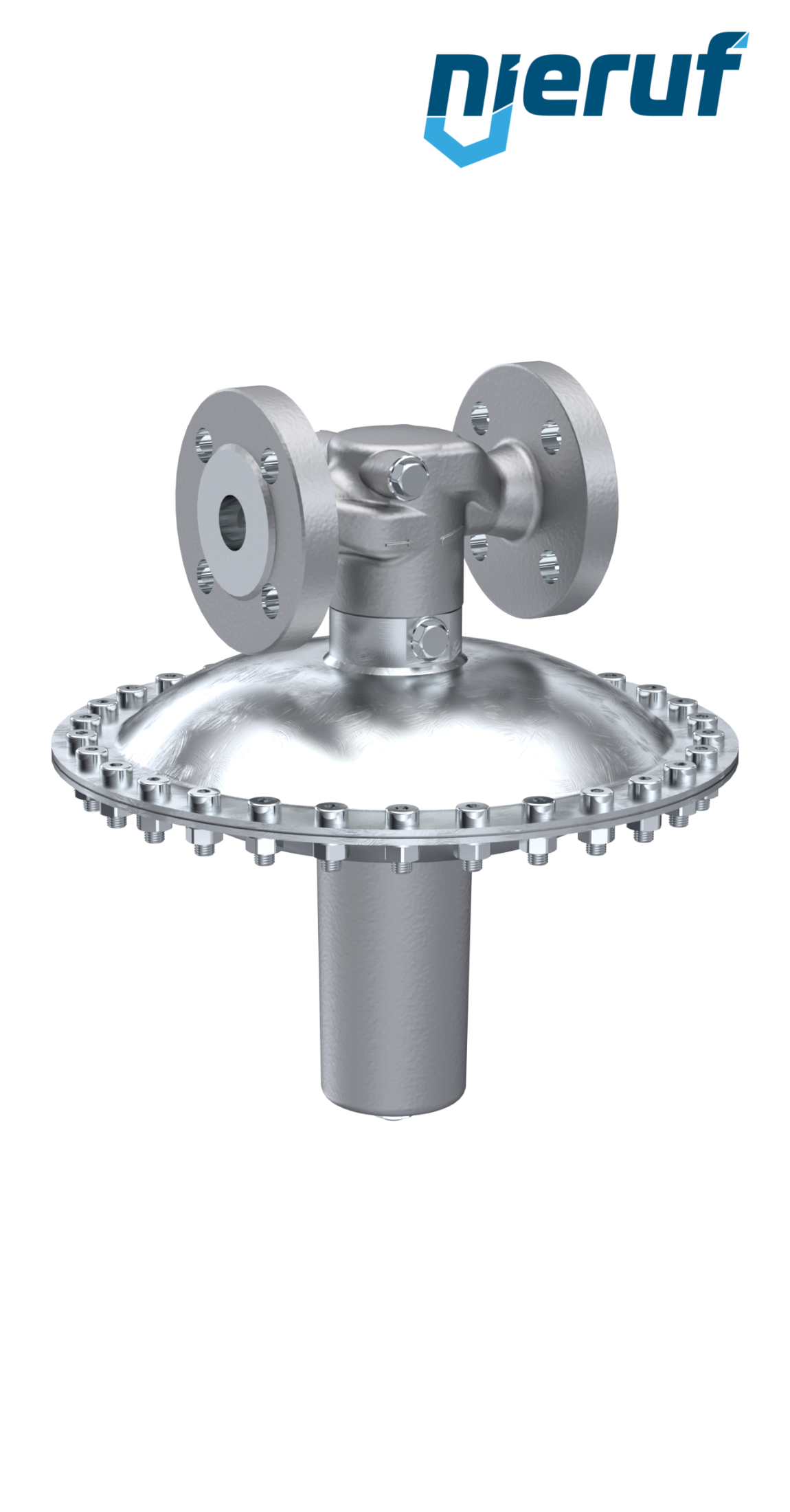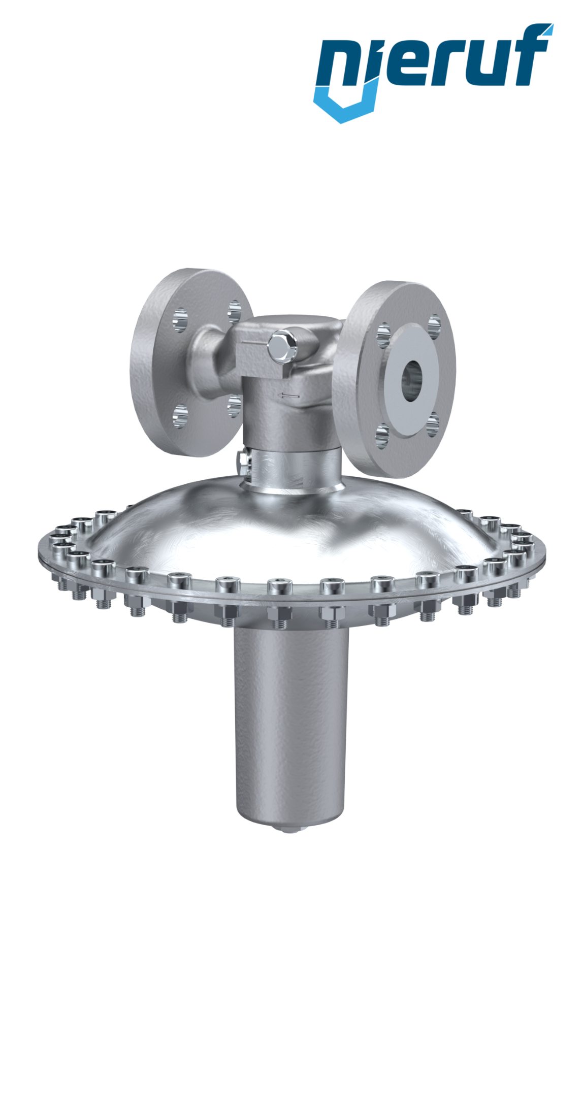Reduktor niskiego ciśnienia DN20 ze stali nierdzewnej z kołnierzem ANSI 150 do płynnych i neutralnych gazowych mediów uszczelnienie FKM, ciśnienie 150 - 500 mbar
