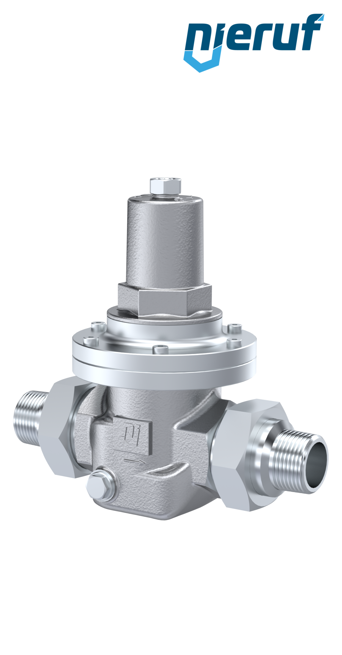 Reduktor niskiego ciśnienia 1" cal gwint zewnętrzny ISO 7 / BSP-T ze stali nierdzewnej uszczelnienie EPDM FDA do płynnych i neutralnych gazowych mediów, zakres ciśnienia 0.2 - 2.0 bar