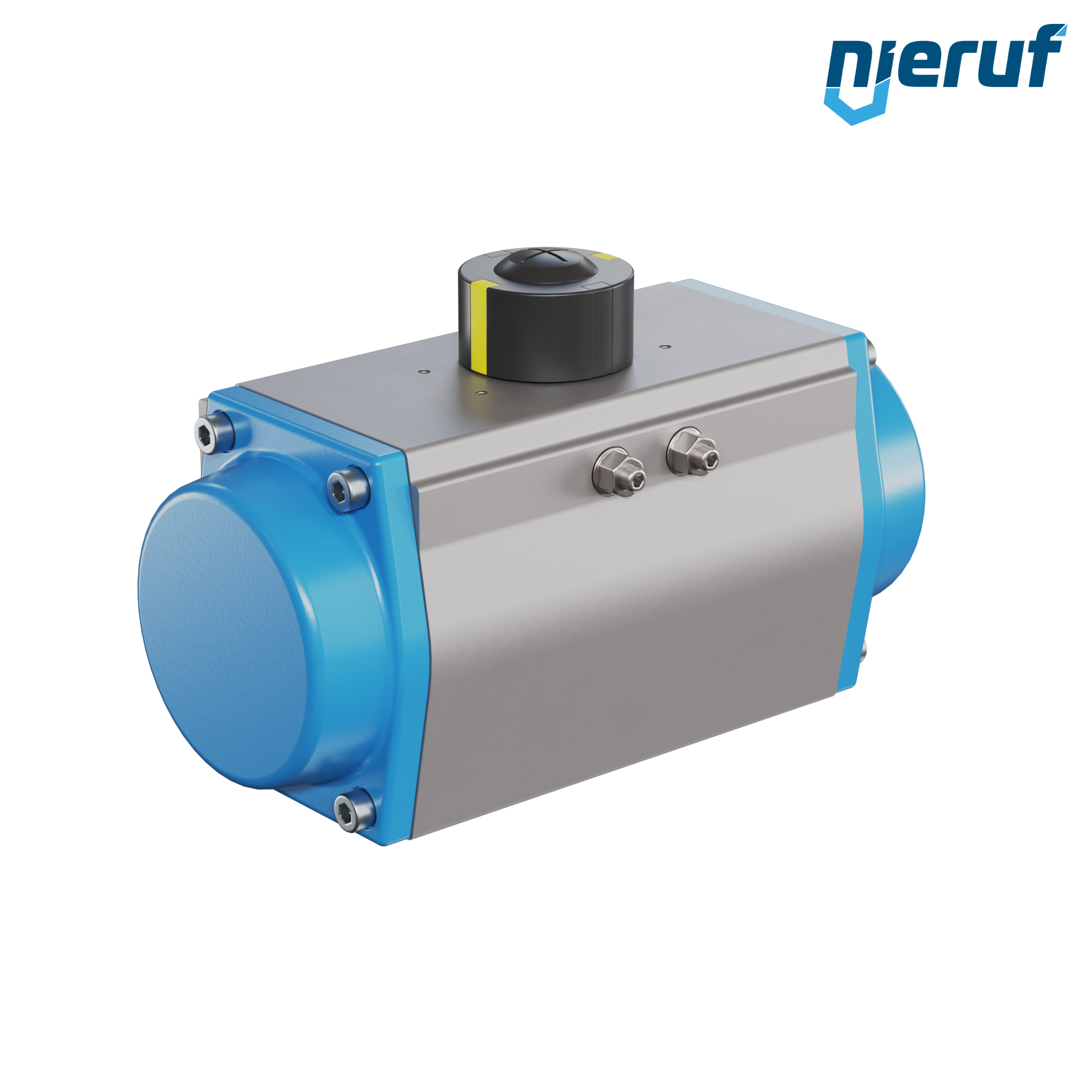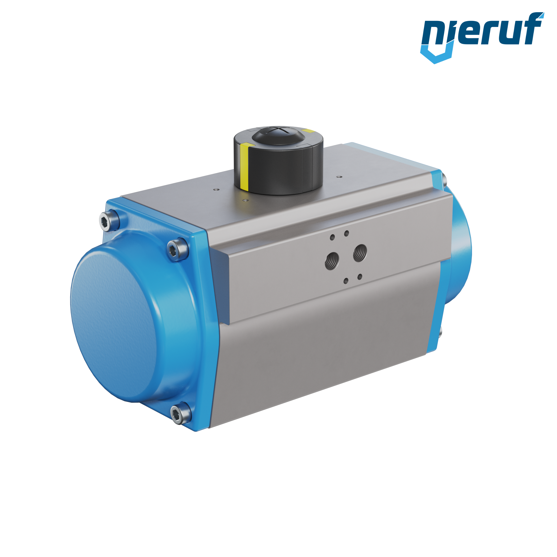 Kompaktowy siłownik pneumatyczny jednostronnego działania do sterowania i regulacji zaworów. Otwieranie sprężynowe. Wstępnie ustawiony kąt obrotu 90° z wizualnym wskaźnikiem położenia.