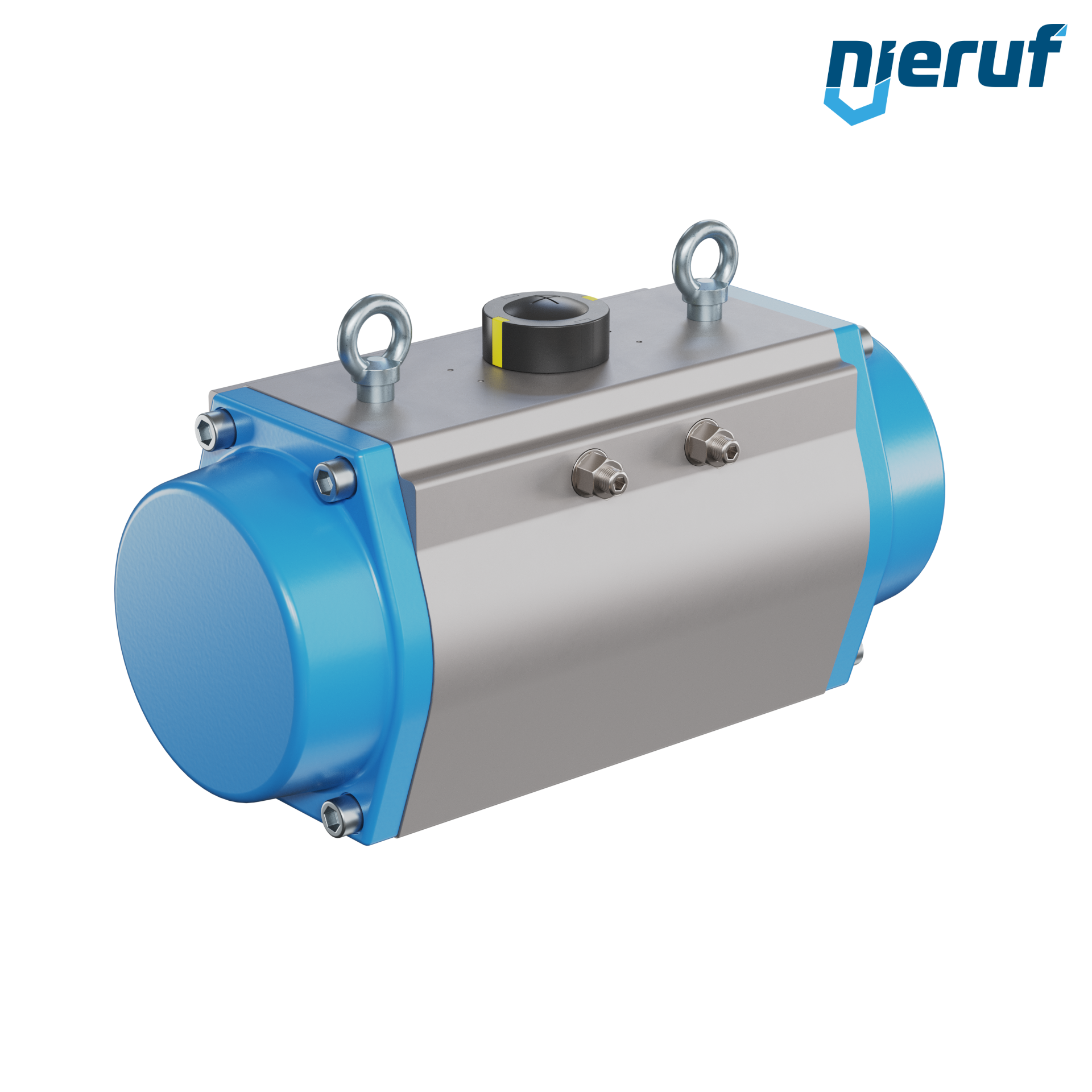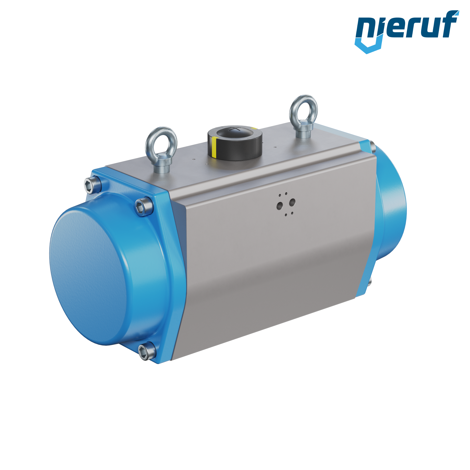| Cechy produktu | Kompaktowy siłownik pneumatyczny jednostronnego działania do sterowania i regulacji zaworów. Otwieranie sprężynowe. Wstępnie ustawiony kąt obrotu 90° z wizualnym wskaźnikiem położenia. Wersja wysokotemperaturowa. |