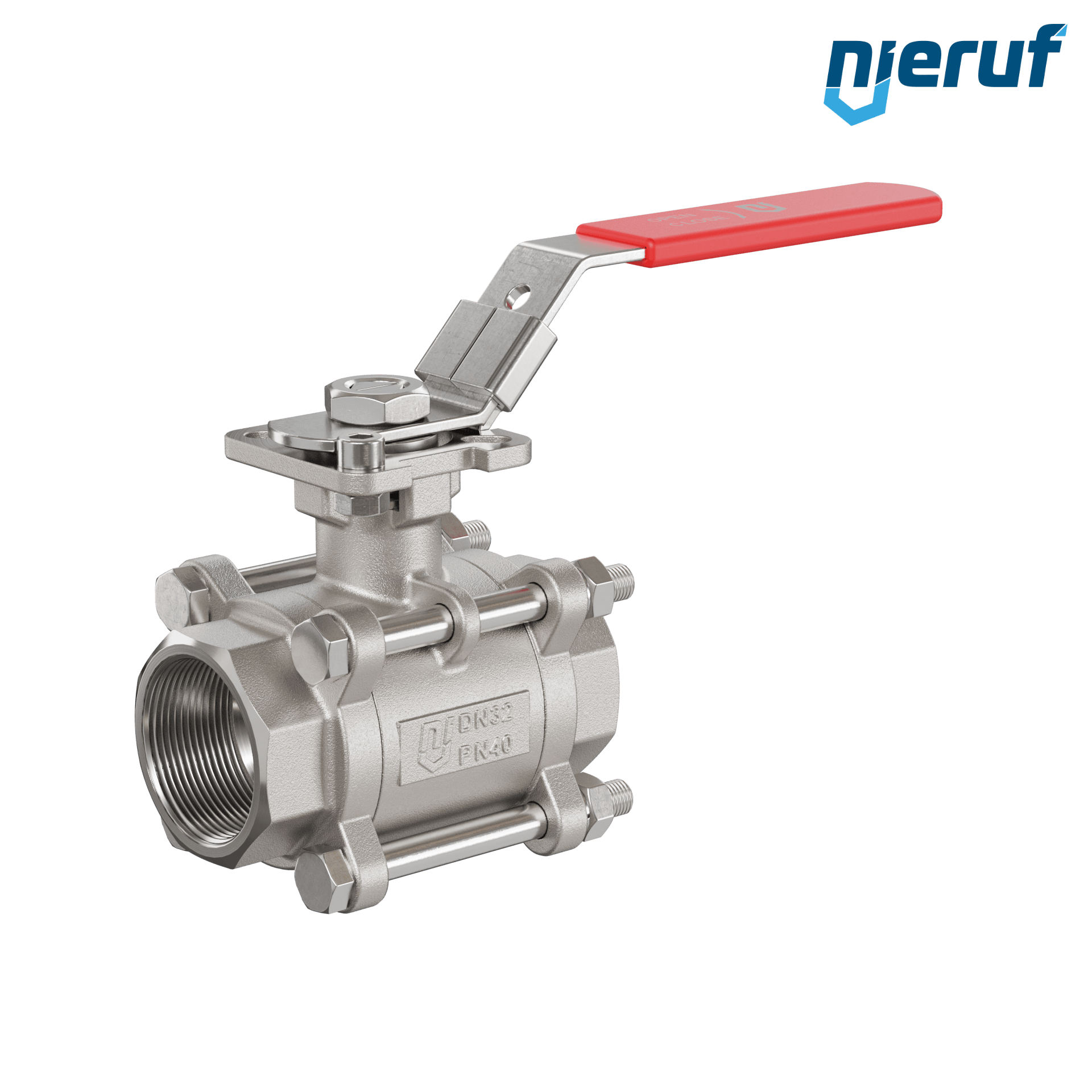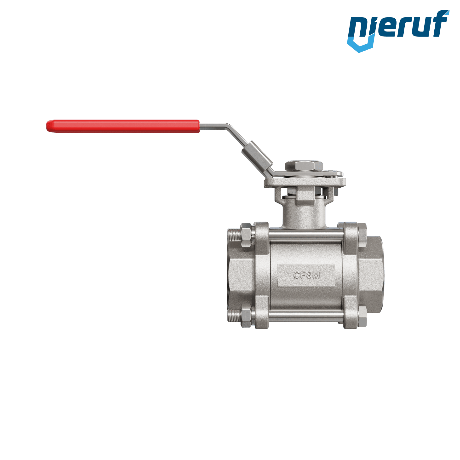 Trzyczęściowy 2 drożny zawór kulowy GK20 z kołnierzem montażowym zgodnym z normą DIN ISO 5211 ze stali nierdzewnej 1.4408 gwint wewnętrzny NPT DN32 - 1 1/4" cala do płynnych i gazowych mediów