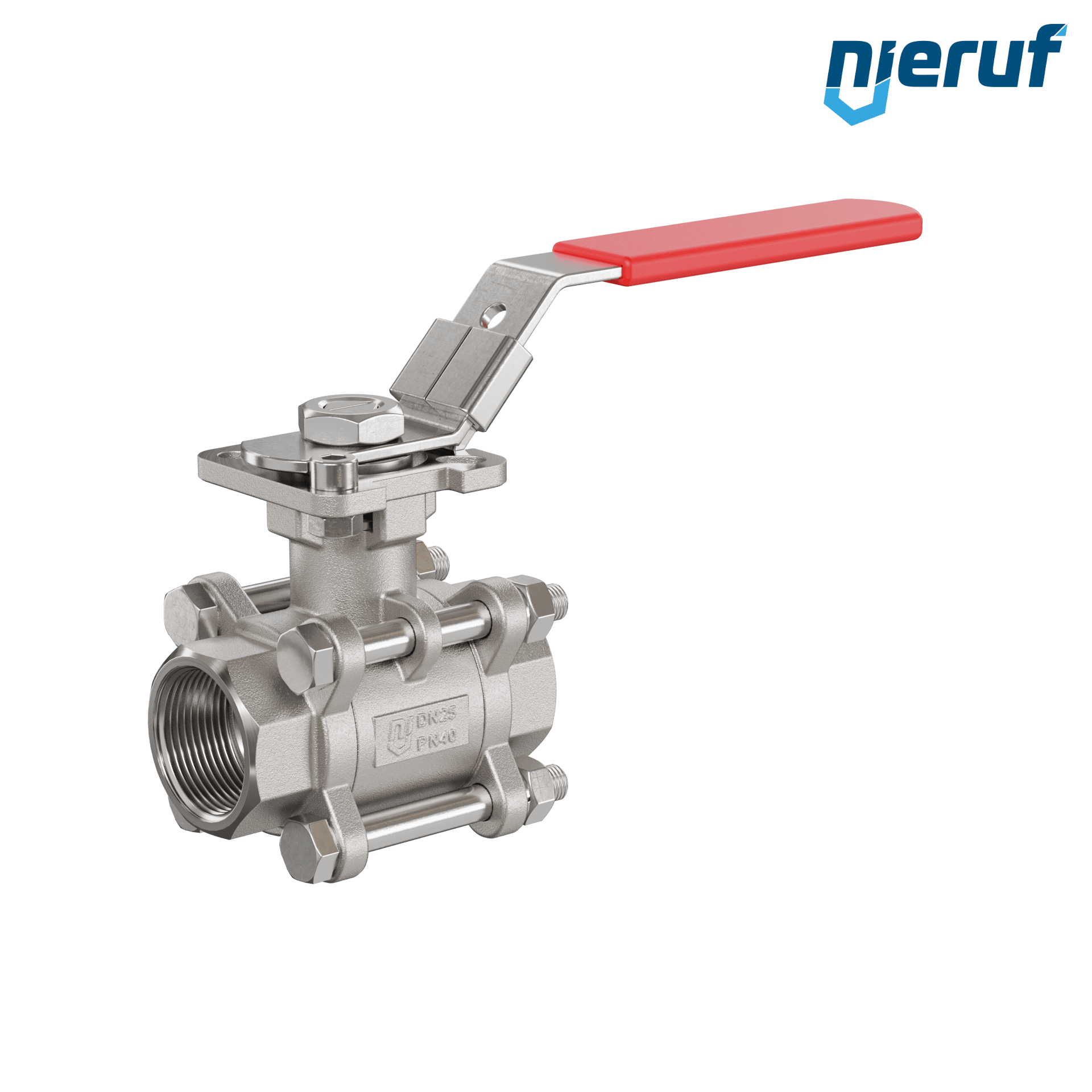 Trzyczęściowy zawór kulowy ze stali nierdzewnej GK20 z kołnierzem montażowym zgodnym z normą DIN ISO 5211 DN25 - 1" cal gwint wewnętrzny NPT