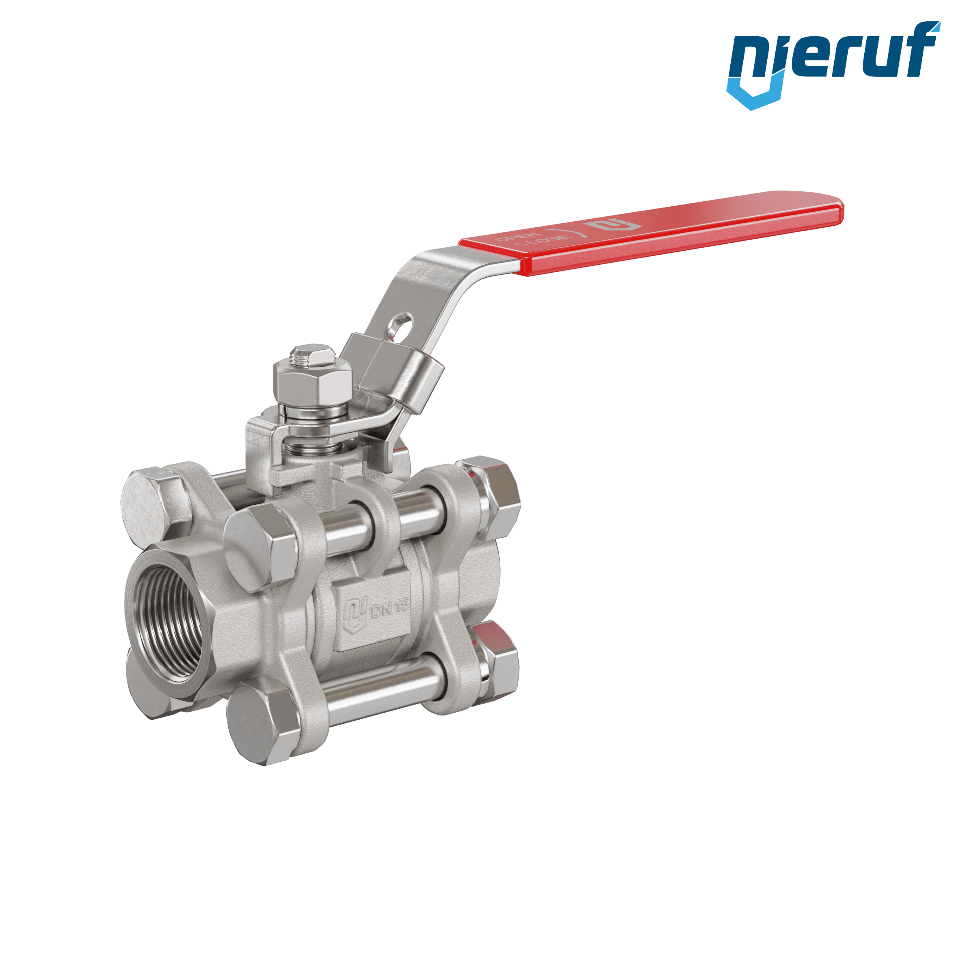 Trzyczęściowy 2 drożny zawór kulowy ze stali nierdzewnej 1.4408 gwint wewnętrzny DN15 - 1/2" cala do płynnych i gazowych mediów