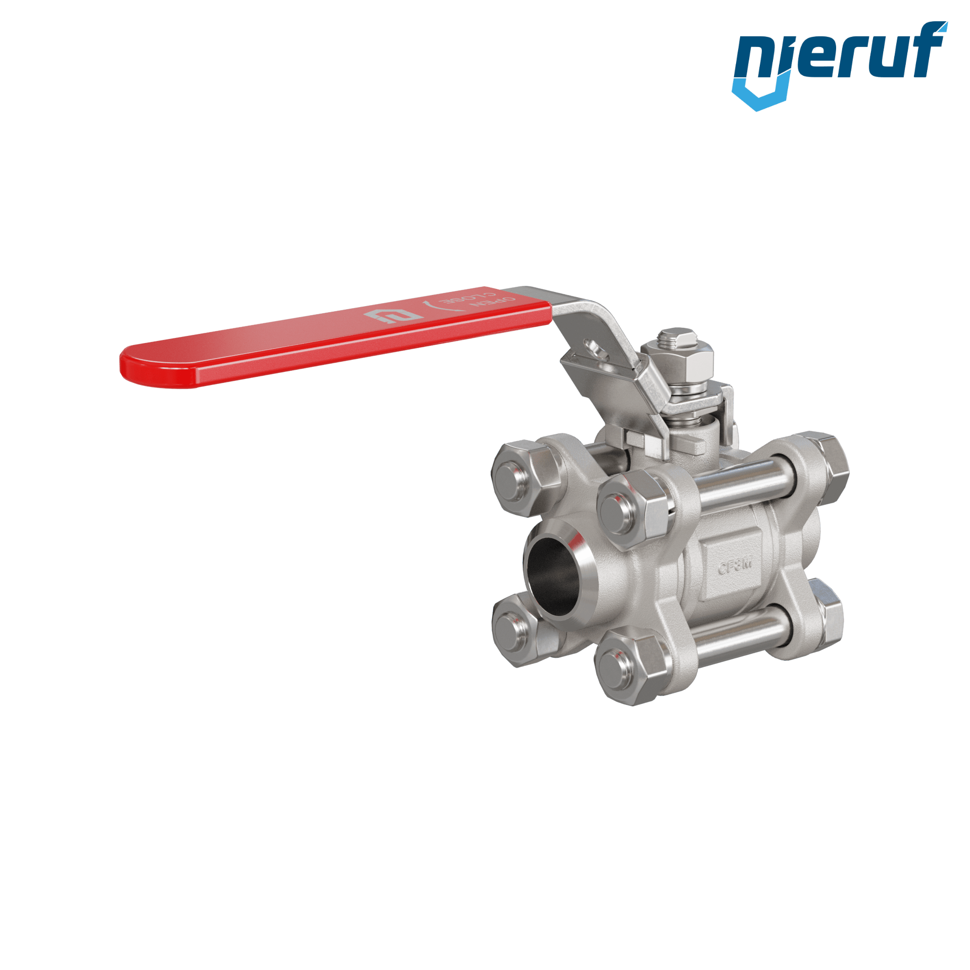 Trzyczęściowy 2 drożny zawór kulowy ze stali nierdzewnej 1.4408 z przyłączem do przyspawania DN15 - 1/2" cala do płynnych i gazowych mediów