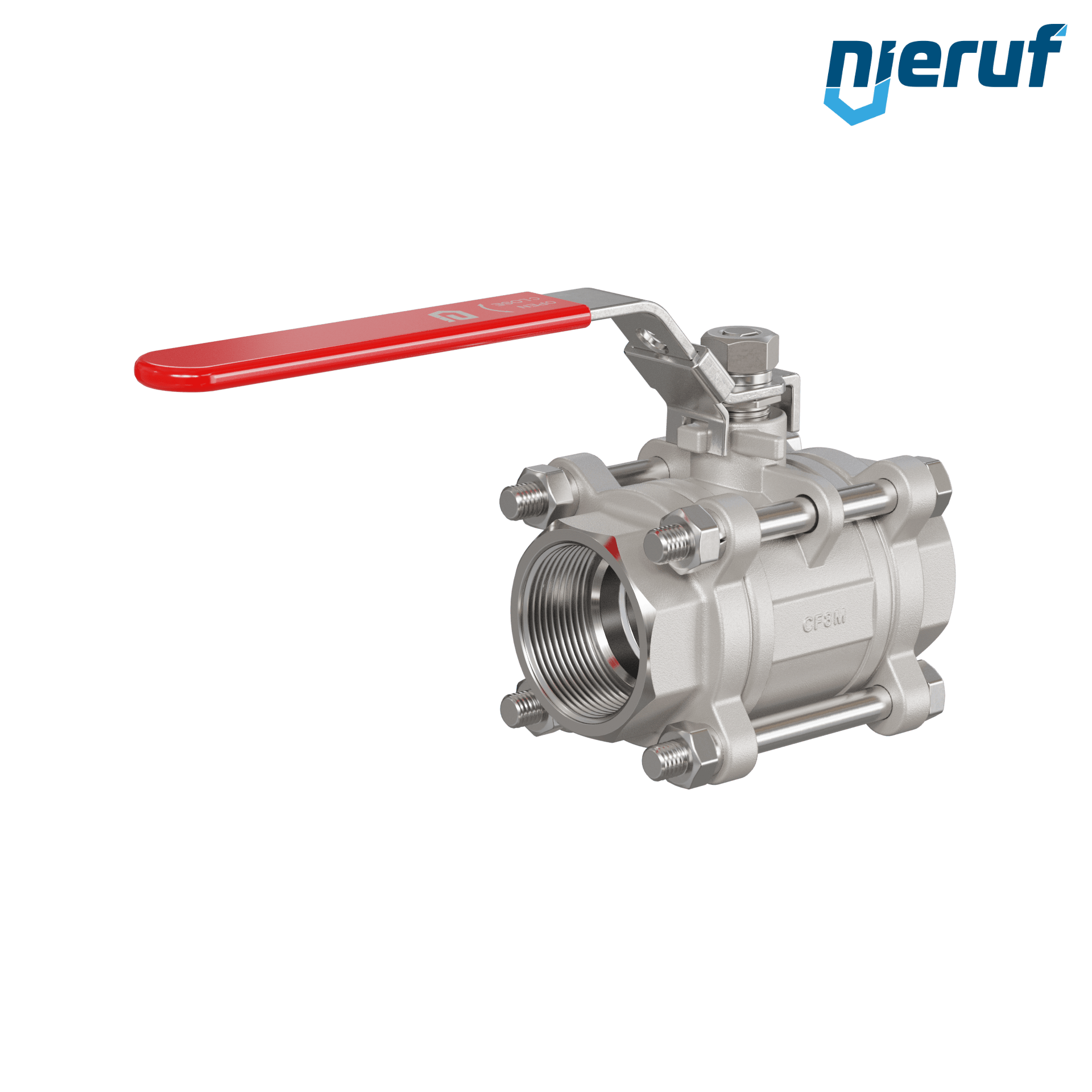Trzyczęściowy 2 drożny zawór kulowy ze stali nierdzewnej 1.4408 gwint wewnętrzny DN32 - 1 1/4" cala do płynnych i gazowych mediów
