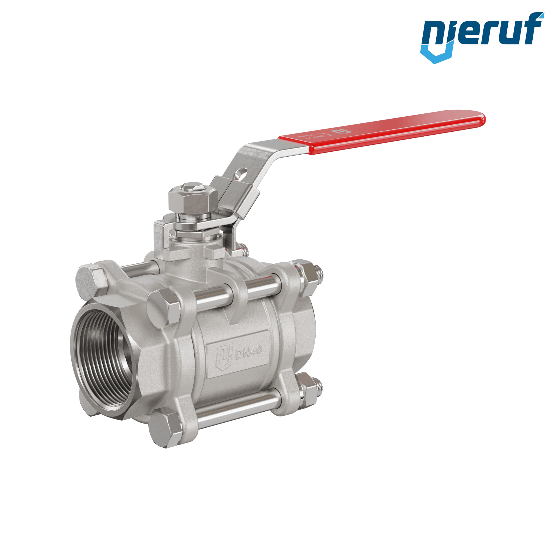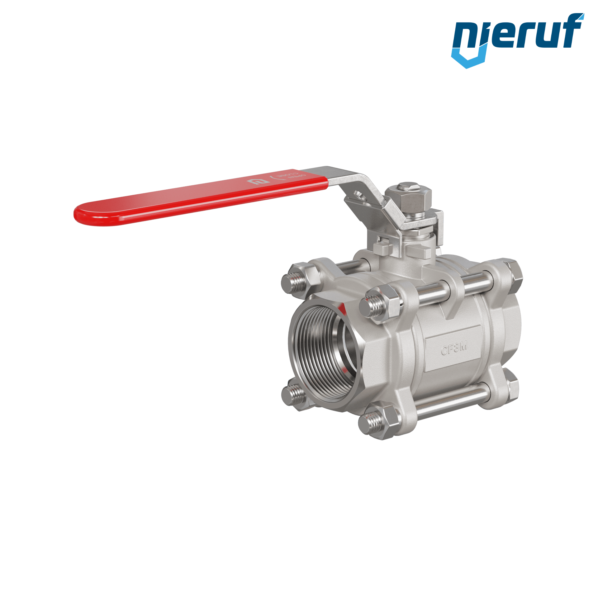 Trzyczęściowy 2 drożny zawór kulowy ze stali nierdzewnej 1.4408 gwint wewnętrzny DN40 - 1 1/2" cala do płynnych i gazowych mediów
