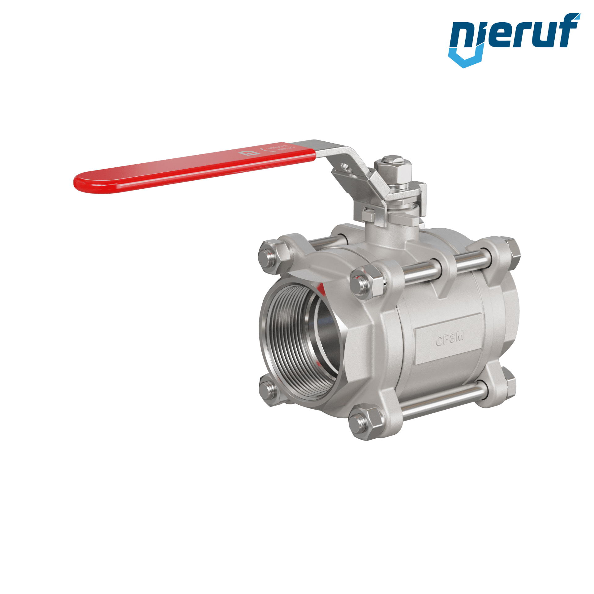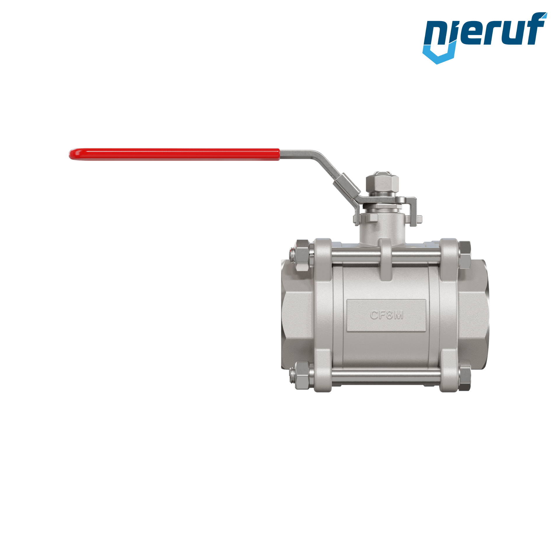 Trzyczęściowy 2 drożny zawór kulowy ze stali nierdzewnej 1.4408 gwint wewnętrzny DN50 - 2" cale do płynnych i gazowych mediów