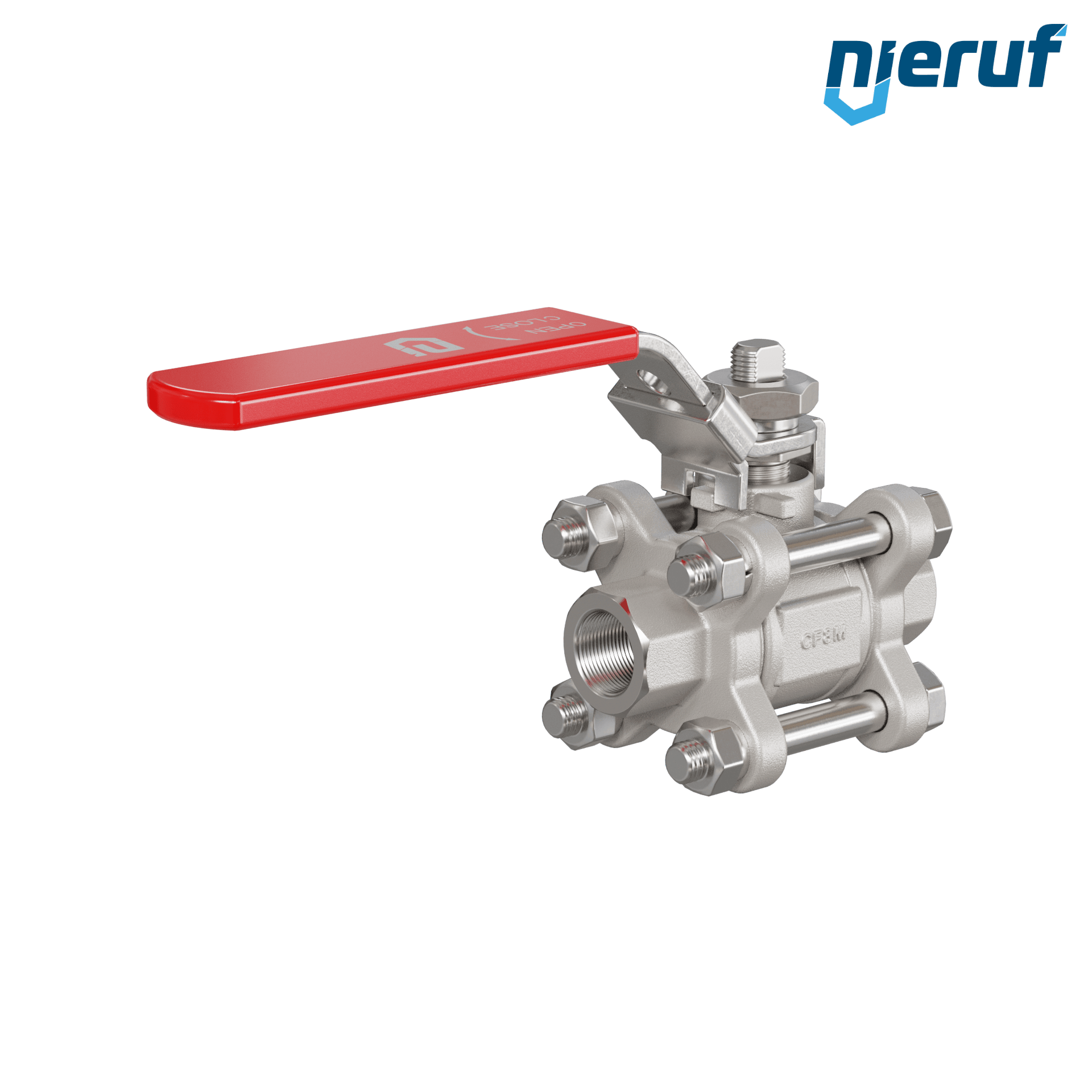Trzyczęściowy 2 drożny zawór kulowy ze stali nierdzewnej 1.4408 gwint wewnętrzny DN8 - 1/4" cala do płynnych i gazowych mediów