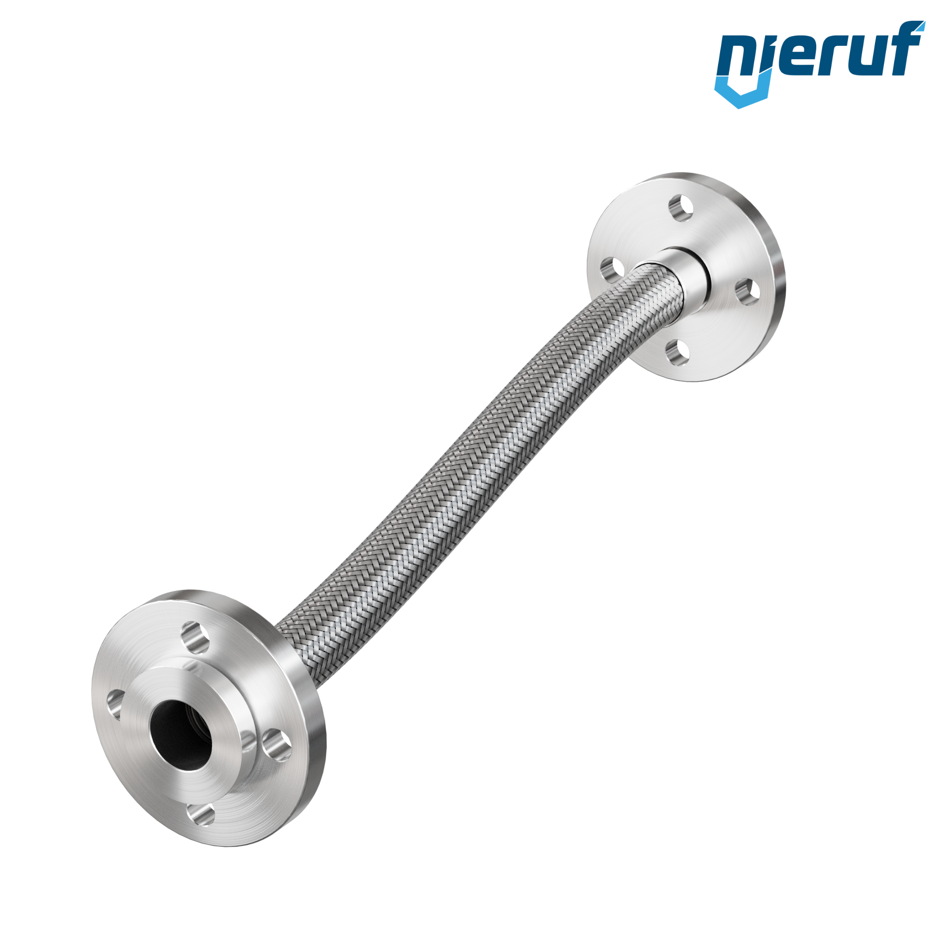 Wąż karbowany ze stali nierdzewnej DN32 - 1 1/4" cala Luźny kołnierz po obu stronach EN 1092-01 Typ 02 PN 40 z flanszą, Pojedynczy oplot, Długość 1000 mm i max. Ciśnienie 35 bar