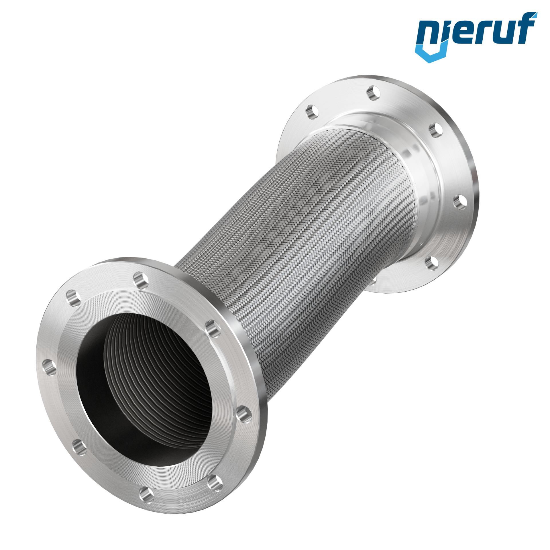Wąż karbowany ze stali nierdzewnej DN200 - 8" cali Stały kołnierz po obu stronach EN 1092-01 Typ 11 PN 10, Pojedynczy oplot, Długość 1000 mm i max. Ciśnienie 6 bar