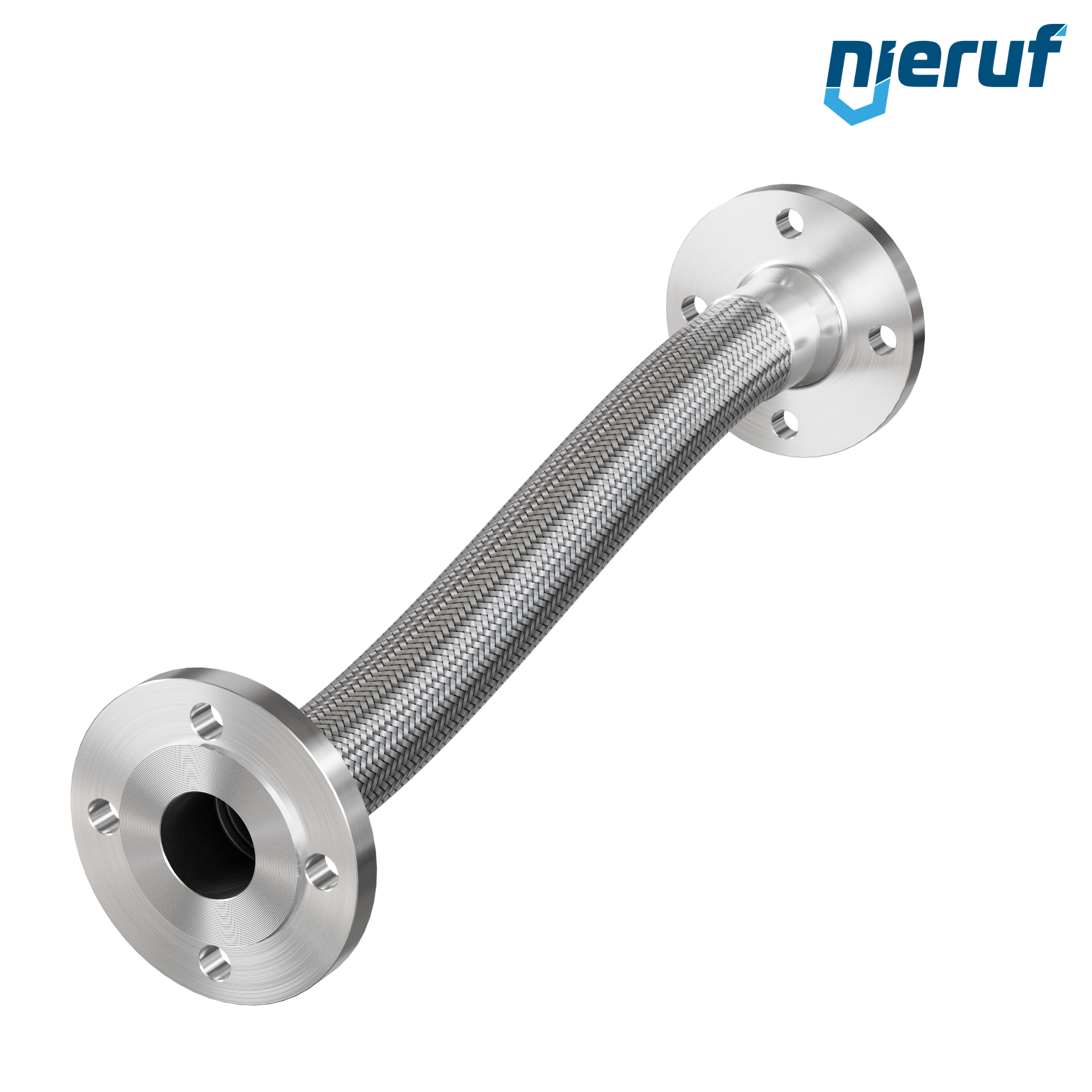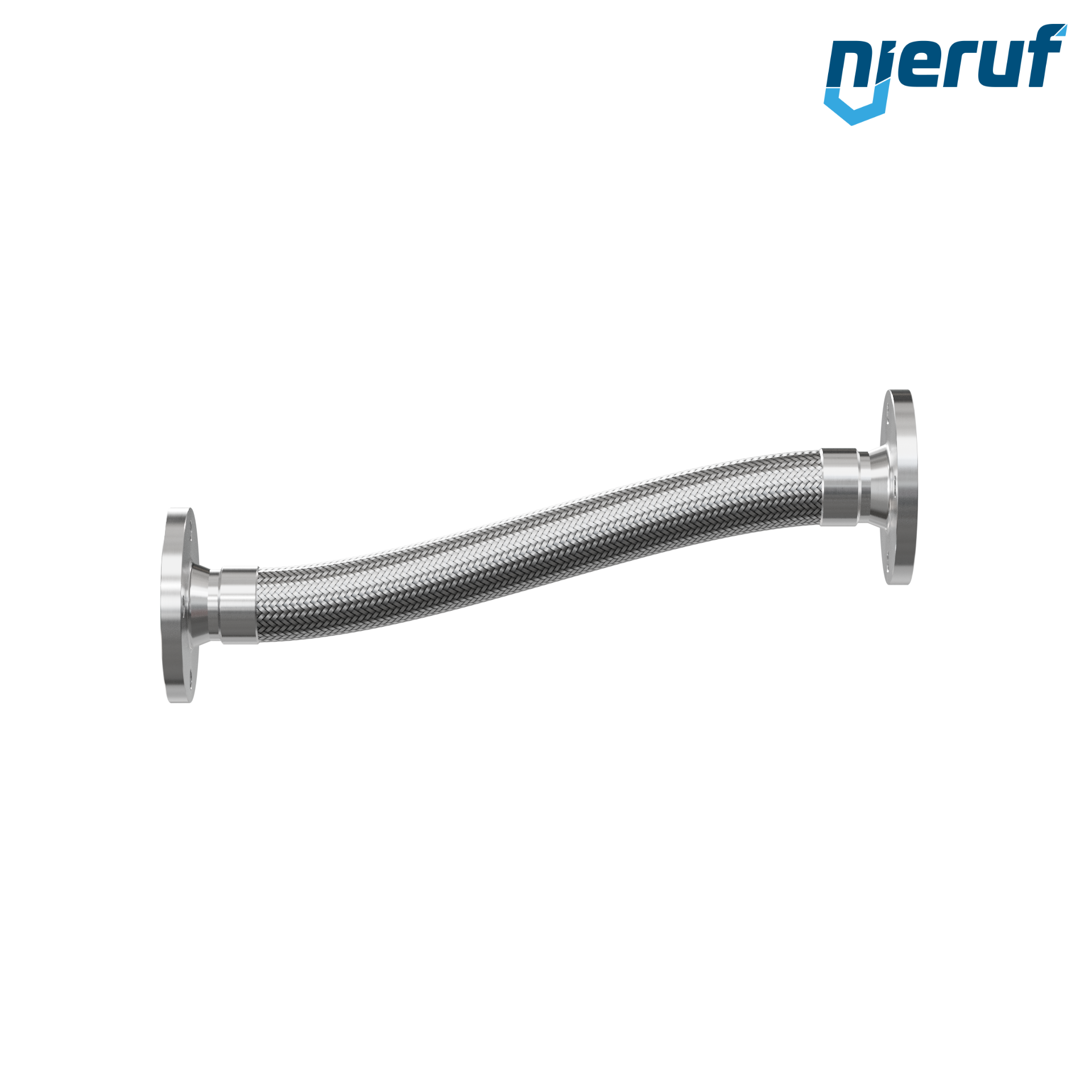 Wąż karbowany ze stali nierdzewnej DN50 - 2" cale Stały kołnierz po obu stronach EN 1092-01 Typ 11 PN 16, Pojedynczy oplot, Długość 1000 mm i max. Ciśnienie 16 bar