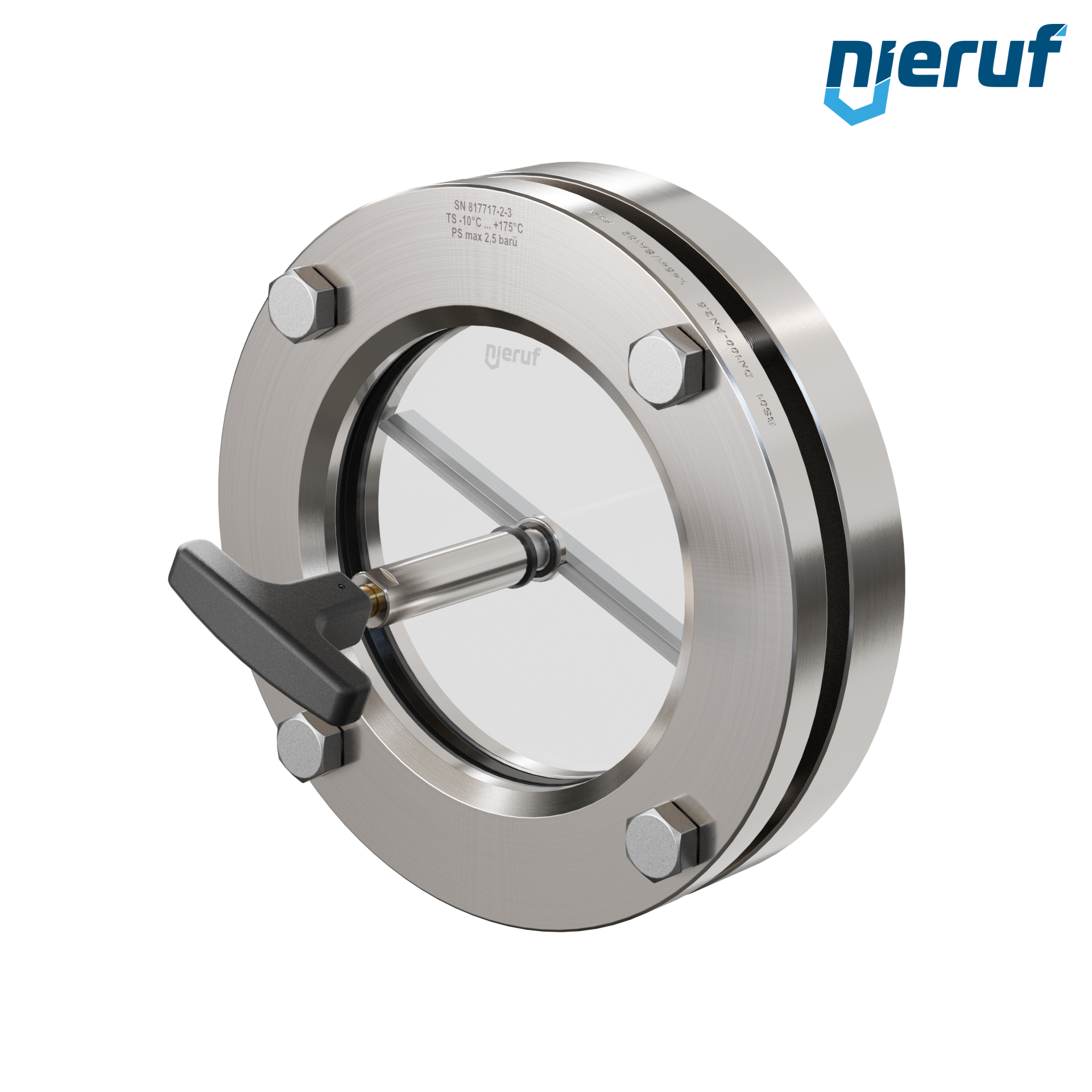 Wziernik do zbiornika z wycieraczką PTFE DN100 BS01 Stal nierdzewna 1.4571 EPDM Szkło borokrzemowe 2,5bar