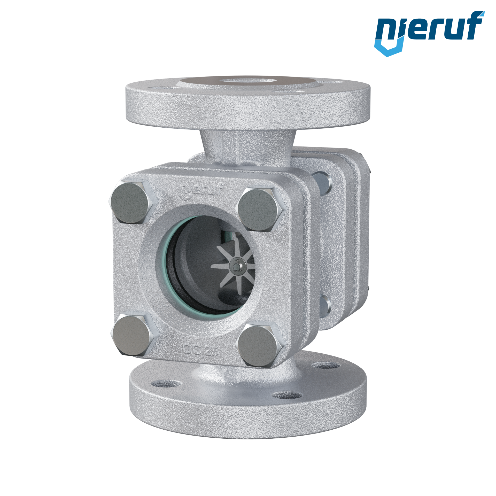 Wziernik kołnierzowy DN25 Żeliwo szare GG25 Szkło borokrzemowe Wersja z rotorem PTFE