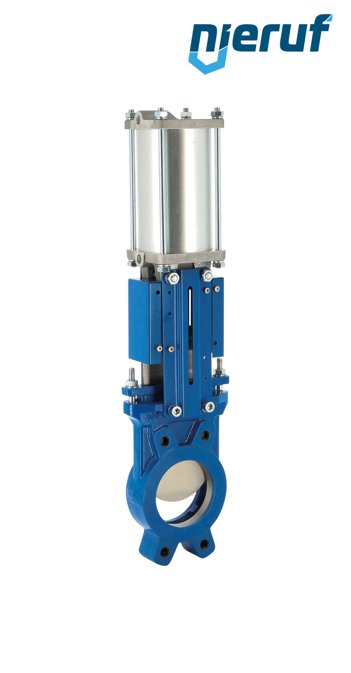 Zasuwa nożowa siłownik pneumatyczny dwustronnego działania DN 125 DIN EN 1092-1 PN10 EPDM z żeliwa EN GJL-250 jednostronnie szczelna do płynnych i gazowych mediów