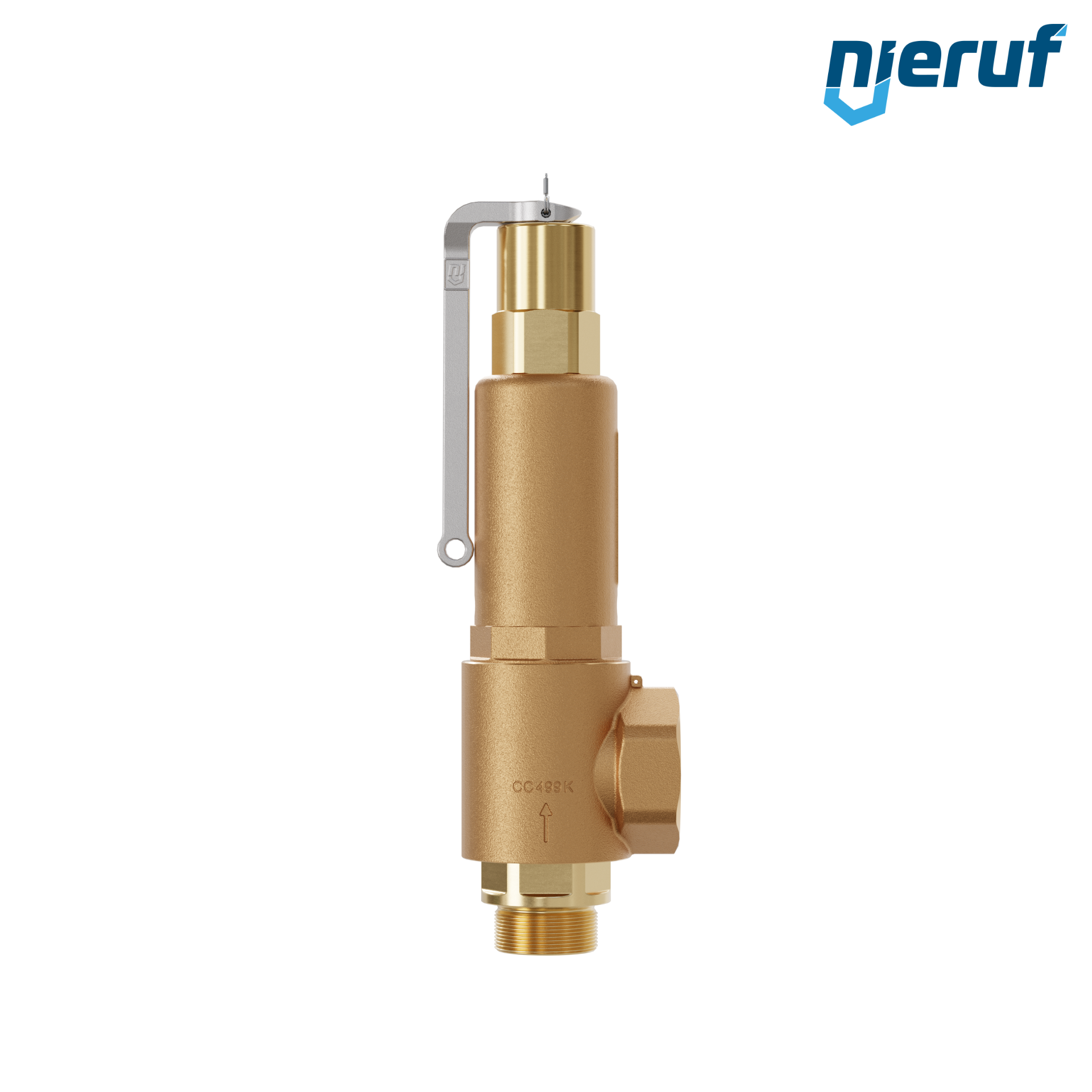 Zawór bezpieczeństwa 1 1/2" GZ x 2" GW filettatura esterna SV07 z brązu do neutralnych mediów gazowych uszczelnienie FKM zakres ciśnienia 0,5 - 25,0 bar- wyższe ciśnienia możliwe w wersji PTFE