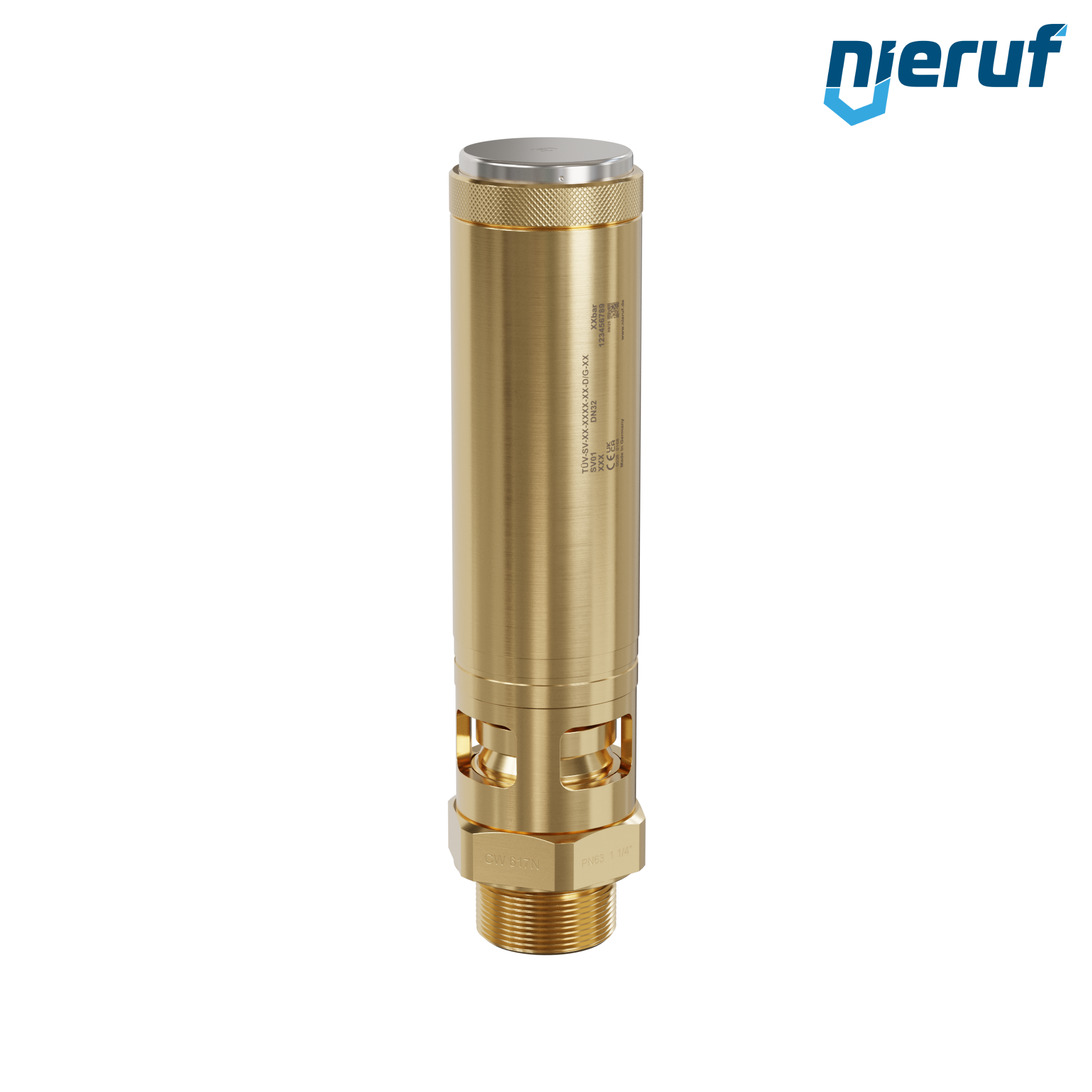 Mosiężny zawór bezpieczeństwa 1 1/4" GZ typ SV01 swobodny wydmuch do sprężonego powietrza i pneumatyki, uszczelnienie z FKM, zakres ciśnienia 0,2 - 25,0 bar - wyższe ciśnienia możliwe w wersji PTFE