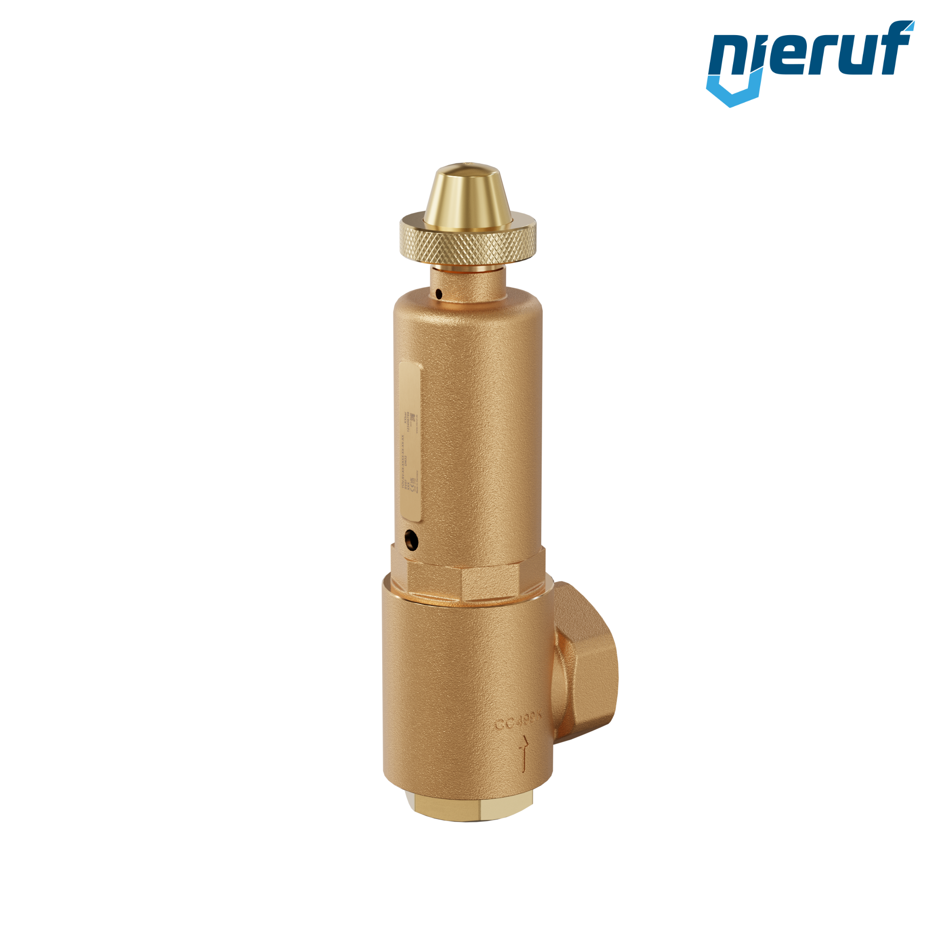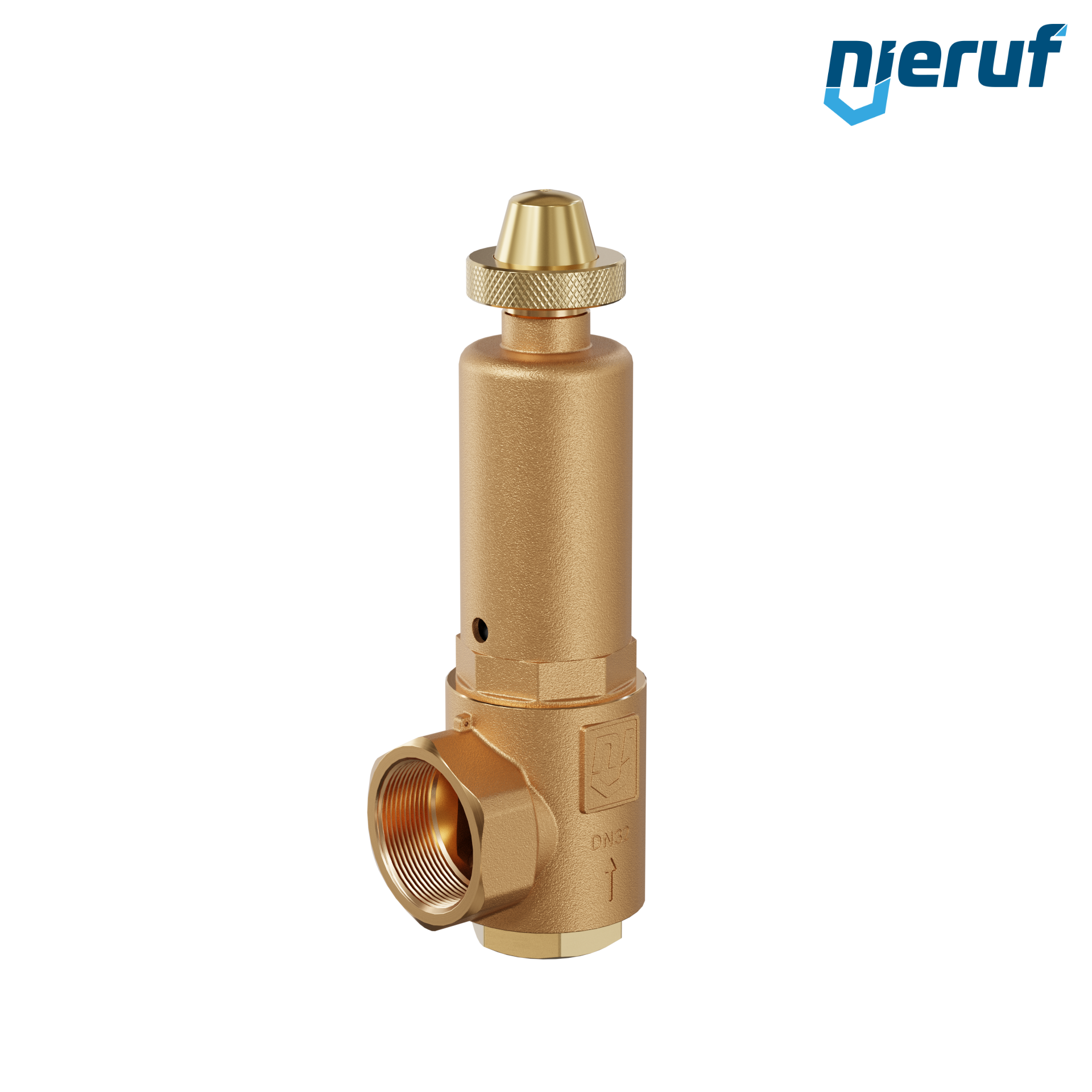Zawór bezpieczeństwa 1 1/4" x 2" GW zakres ciśnienia 0,5 - 25,0 bar- wyższe ciśnienia możliwe w wersji PTFE do neutralnych mediów gazowych brąz uszczelnienie NBR z obrotowym mechanizmem podnoszącym