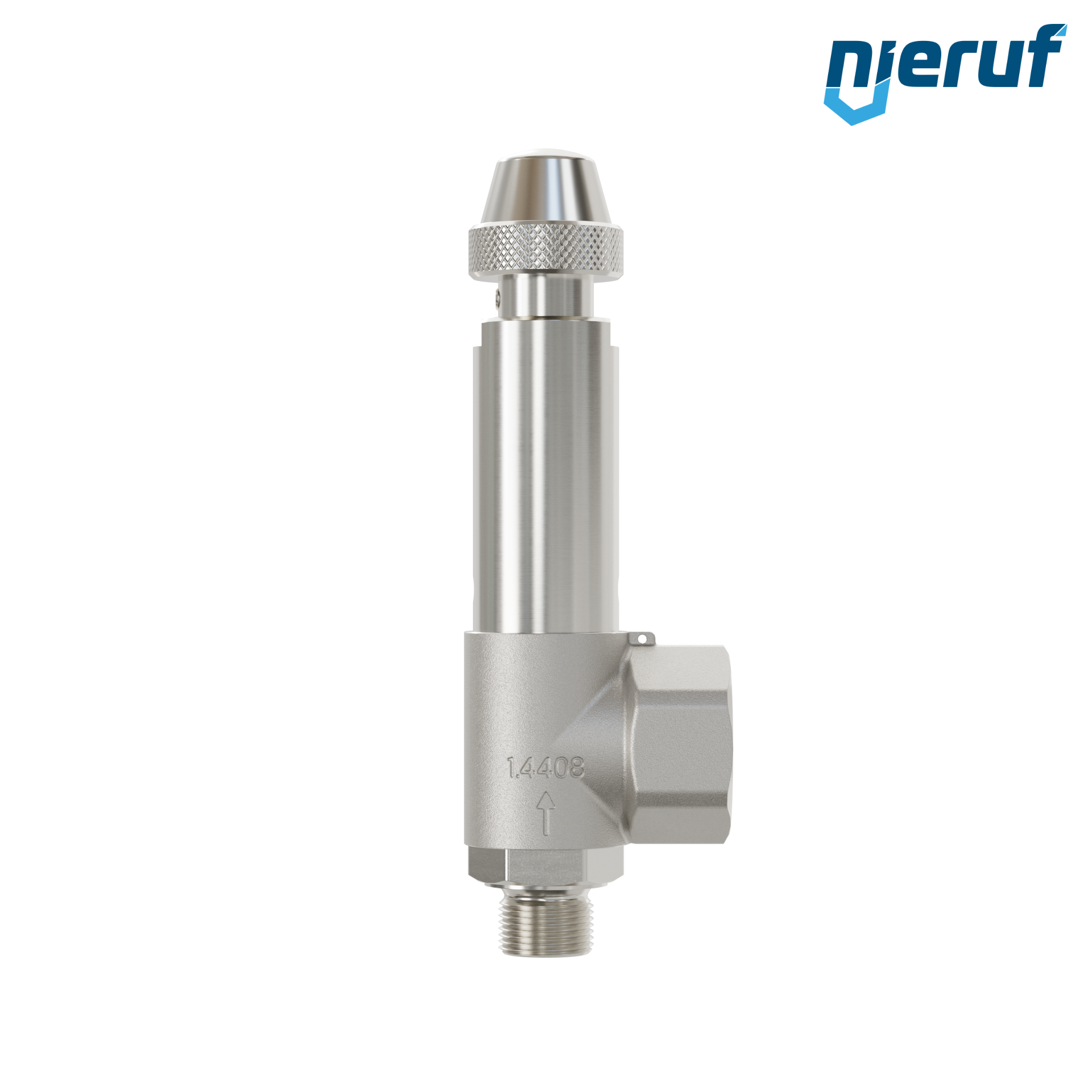 Kątowy zawór bezpieczeństwa z mieszkiem do płynnych mediów NBR 1/2" GZ x 1" GW ze stali nierdzewnej typ SV06 gwint zewnętrzny BSP-P z obrotowym mechanizmem podnoszącym
