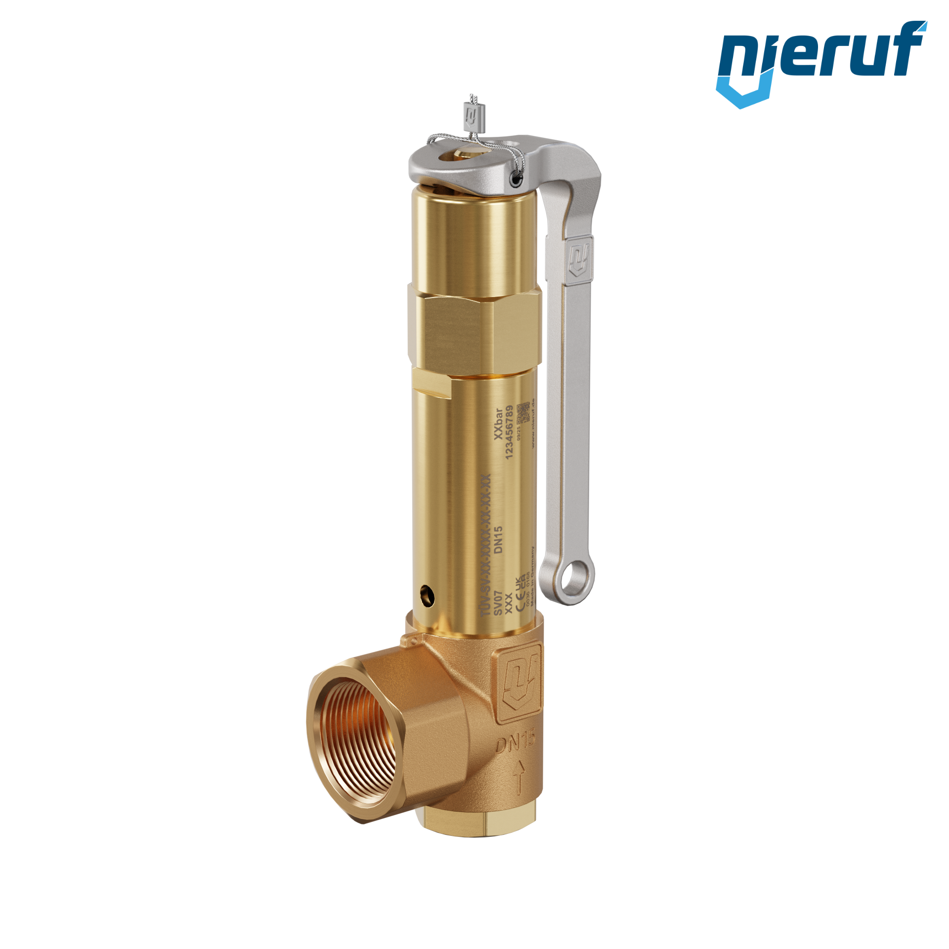 Zawór bezpieczeństwa 1/2" x 1" GW Dźwignia SV07 do neutralnych mediów gazowych brąz uszczelnienie EPDM zakres ciśnienia 0,5 - 25,0 bar- wyższe ciśnienia możliwe w wersji PTFE