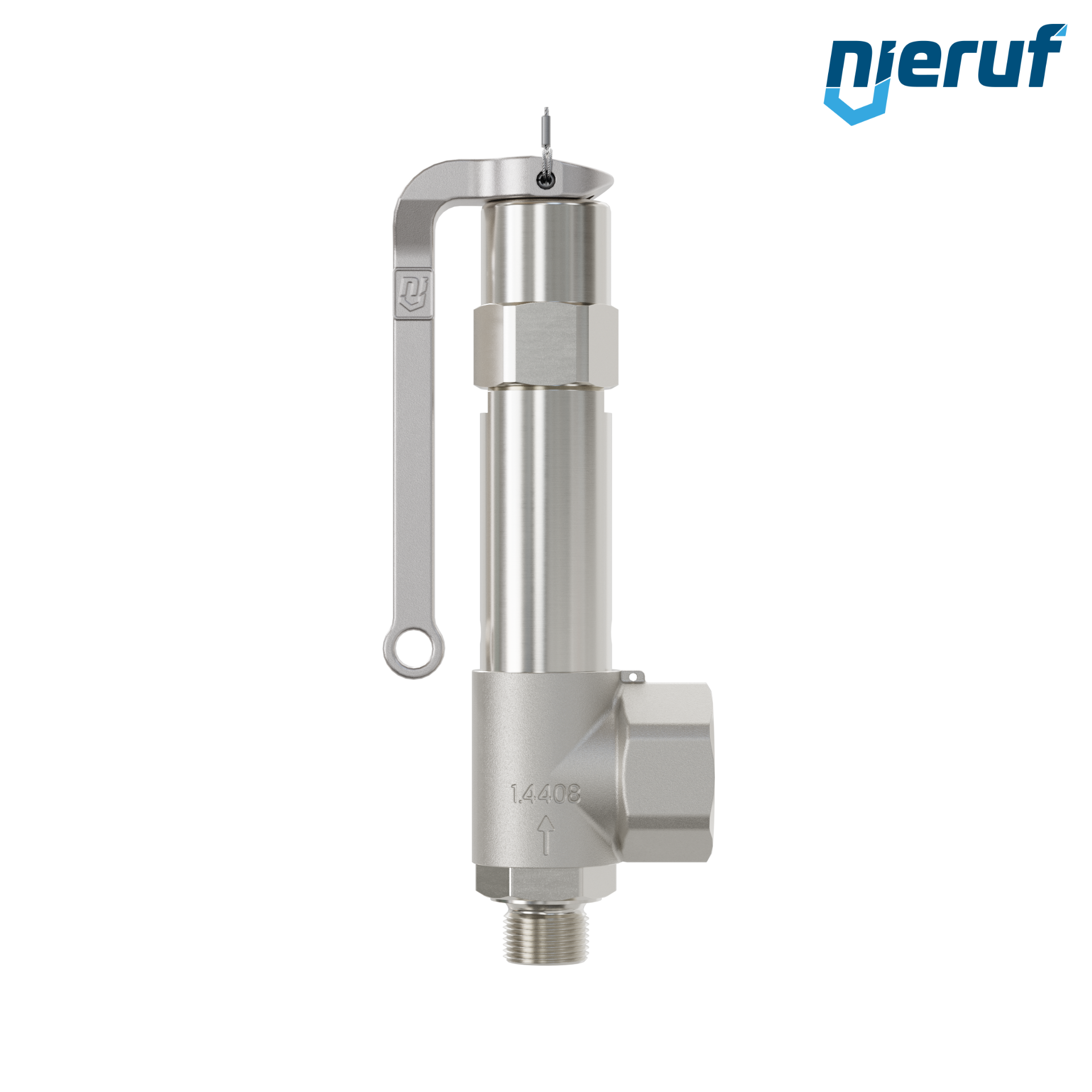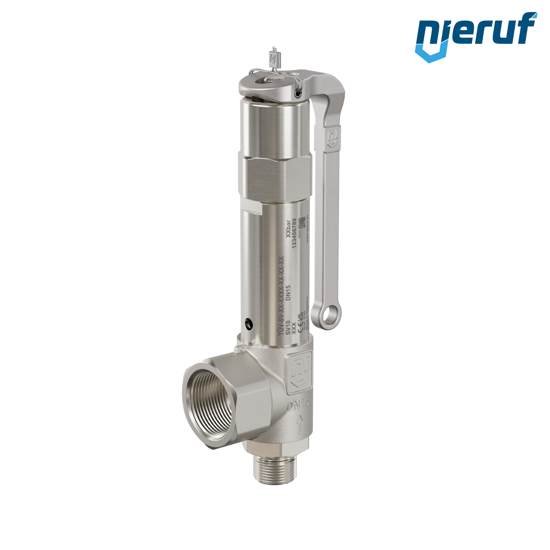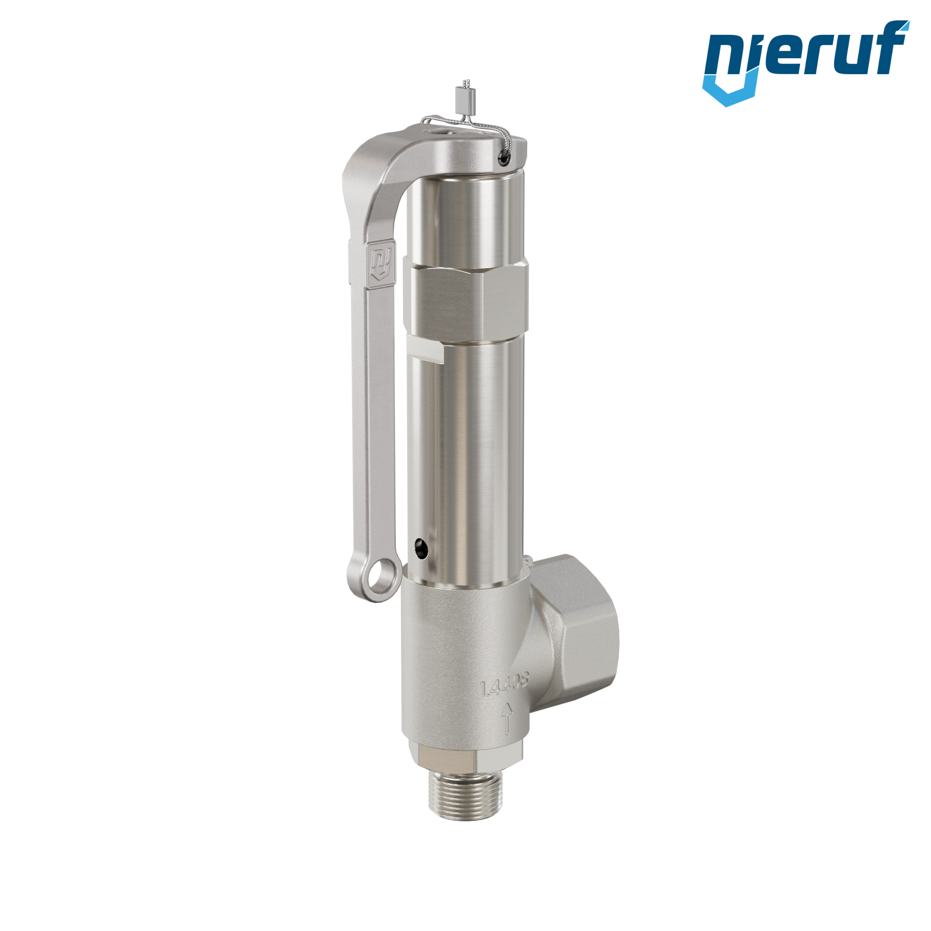 Zawór bezpieczeństwa 1/2" GZ x 1" GW Gwint zewnętrzny BSP-P SV10 ze stali nierdzewnej do gazowych mediów uszczelnienie FKM zakres ciśnienia 1,0 - 25,0 bar- wyższe ciśnienia możliwe w wersji PTFE Dźwignia