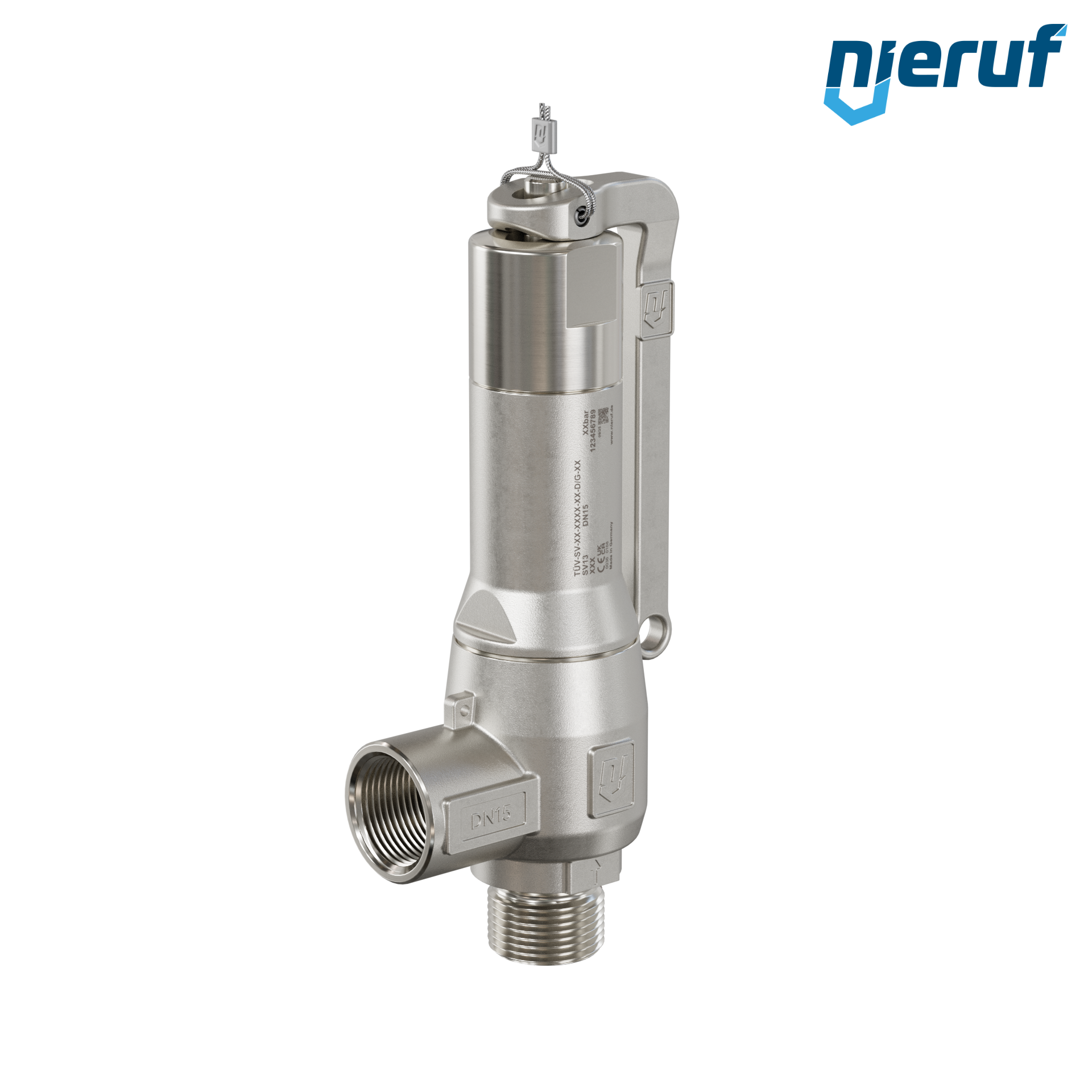 Zawór bezpieczeństwa 1/2" GZ NPT x 1/2" GW SV13 ze stali nierdzewnej do płynnych i gazowych mediów uszczelnienie PTFE ciśnienie 0,5 - 25,0 bar z dźwignią