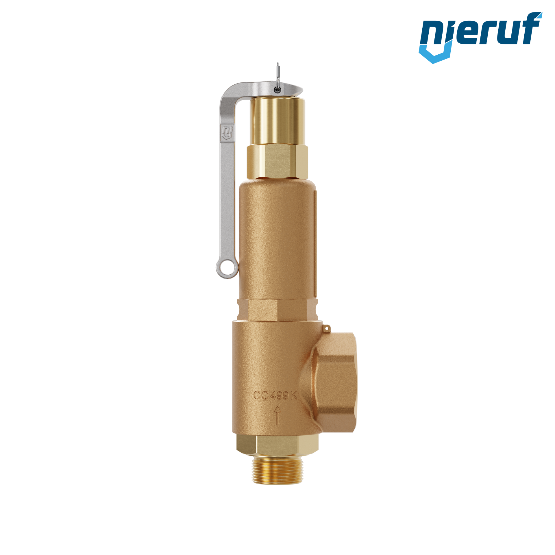 Zawór bezpieczeństwa 1" GZ x 1 1/2" GW filettatura esterna SV07 z brązu do neutralnych mediów gazowych uszczelnienie EPDM zakres ciśnienia 0,5 - 25,0 bar- wyższe ciśnienia możliwe w wersji PTFE