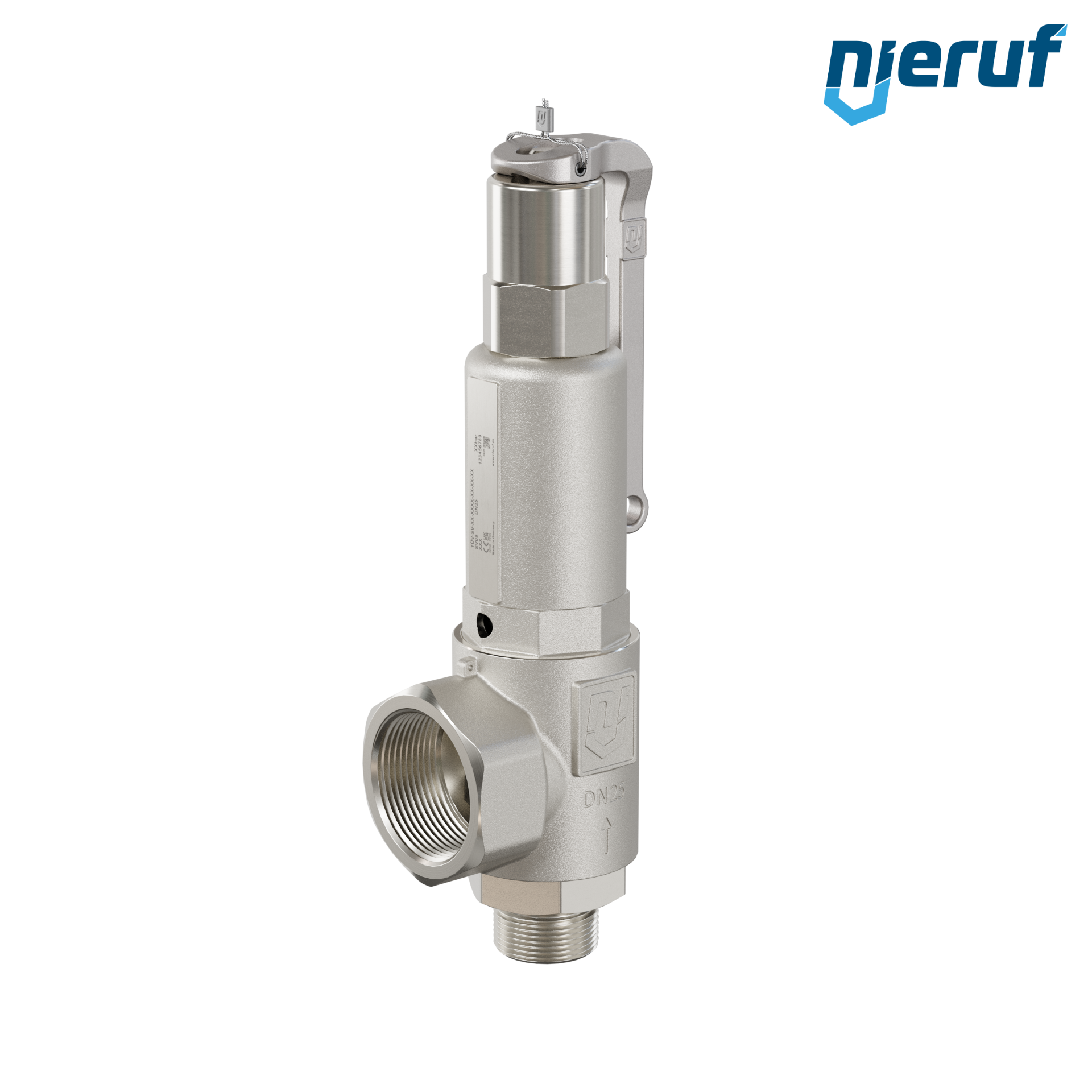 Zawór bezpieczeństwa 1" GZ x 1 1/2" GW mâle SV09 ze stali nierdzewnej do neutralnych mediów gazowych uszczelnienie PTFE zakres ciśnienia 0,5 - 70,0 bar