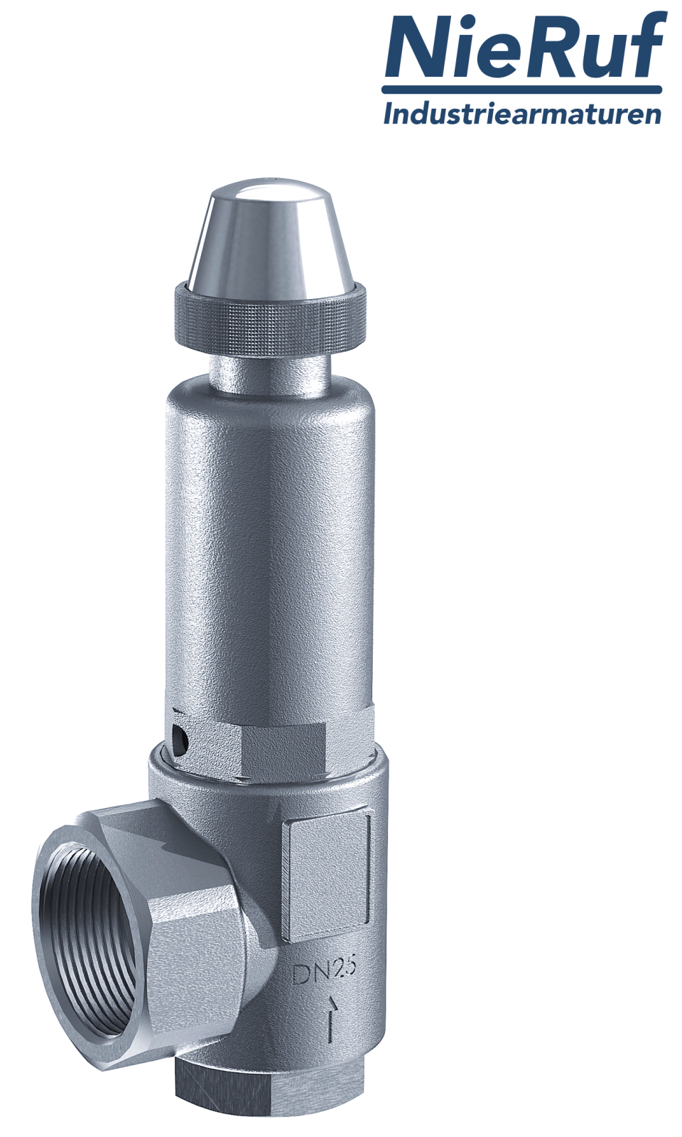 Zawór bezpieczeństwa 1" z mieszkiem SV10 ze stali nierdzewnej do gazowych mediów uszczelnienie FKM zakres ciśnienia 0,5 - 25,0 bar- wyższe ciśnienia możliwe w wersji PTFE obrotowy mechanizm podnoszący