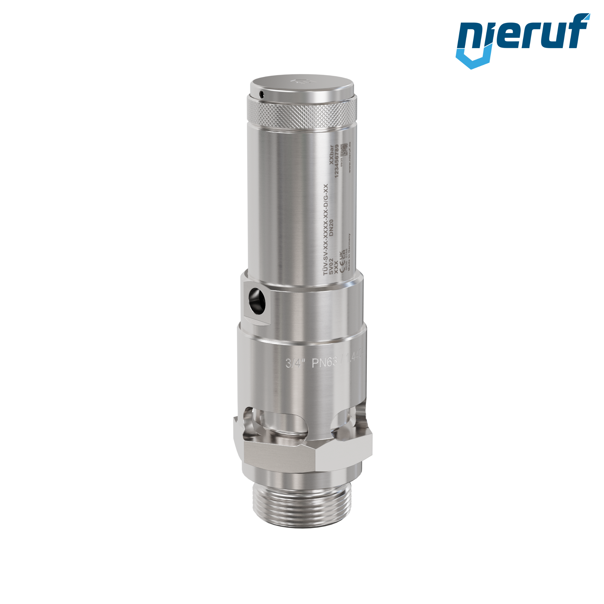 Zawór bezpieczeństwa 3/4" GZ typ SV02 swobodny wydmuch do sprężonego powietrza i pneumatyki, ze stali nierdzewnej uszczelnienie FKM , zakres ciśnienia 0,2 - 25,0 bar - wyższe ciśnienia możliwe w wersji PTFE