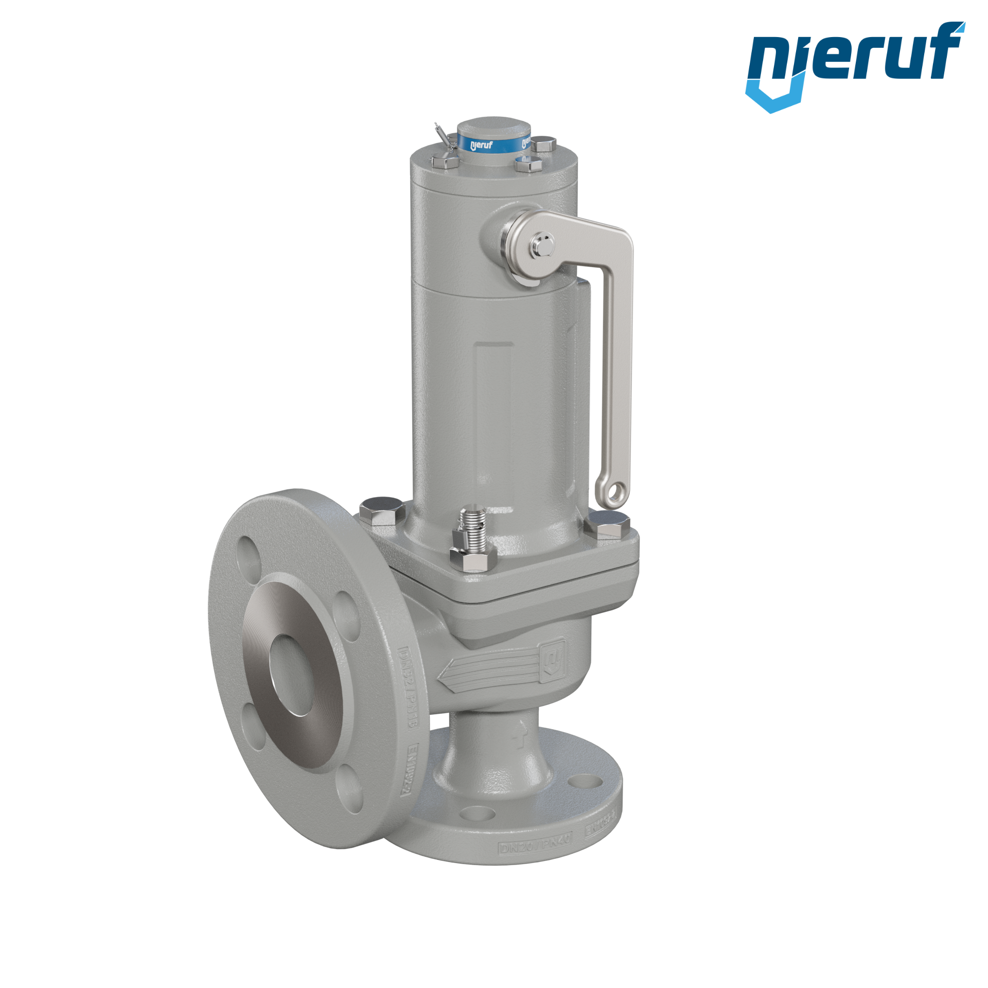 Zawór bezpieczeństwa kołnierzowy gazoszczelny DN20/DN32 SF06 z żeliwa sferoidalnego do płynnych i gazowych mediów DIN EN 5.3103 uszczelnienie Metal zakres ciśnienia 0,2 - 40,0 bar z dźwignią podnoszącą