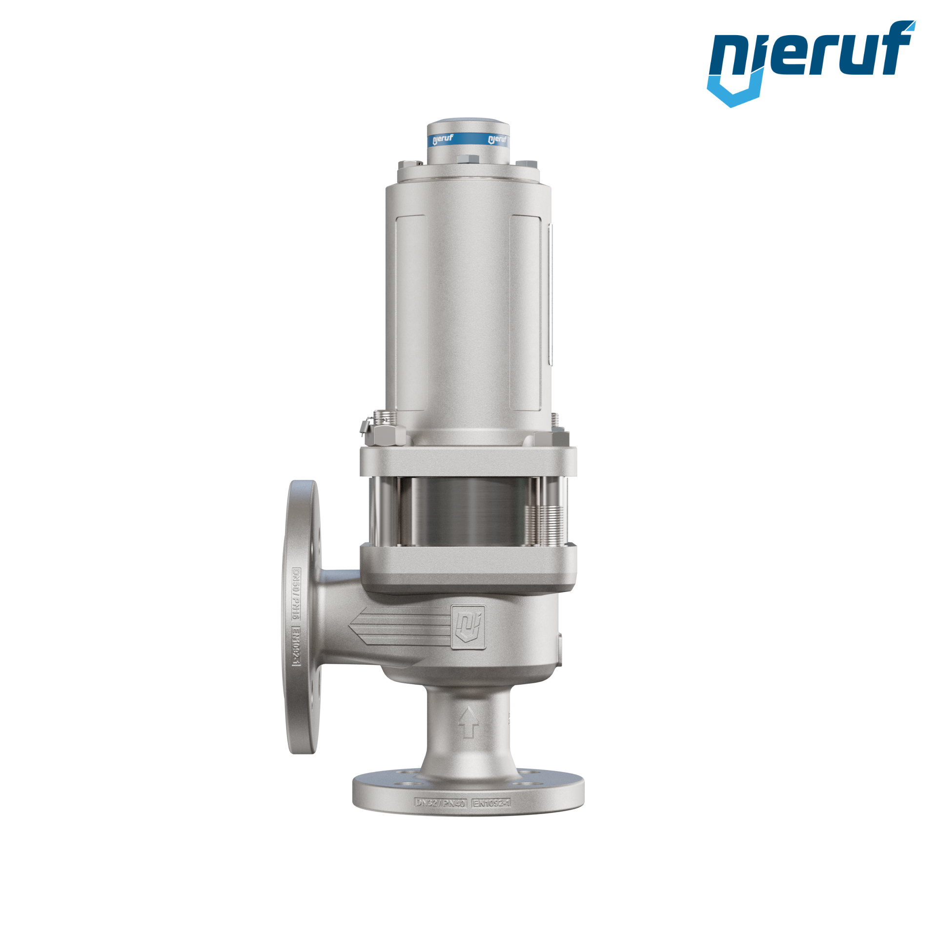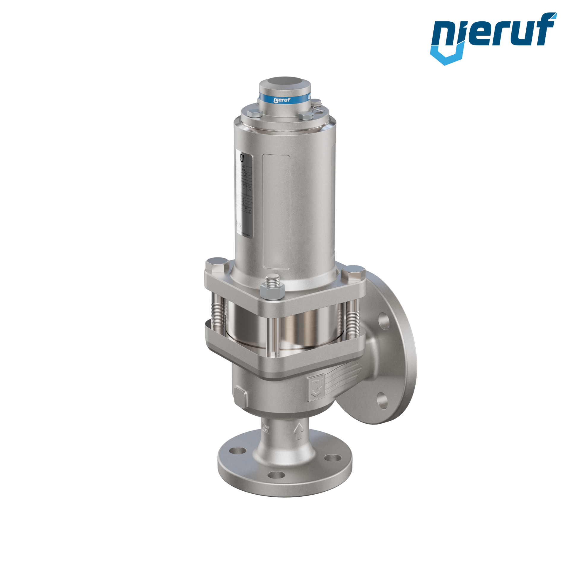 Kołnierzowy zawór bezpieczeństwa DN32/DN50 SF04 gazoszczelny z mieszkiem ze stali nierdzewnej 1.4408 uszczelnienie PTFE zakres ciśnienia 1,0 - 40,0 bar