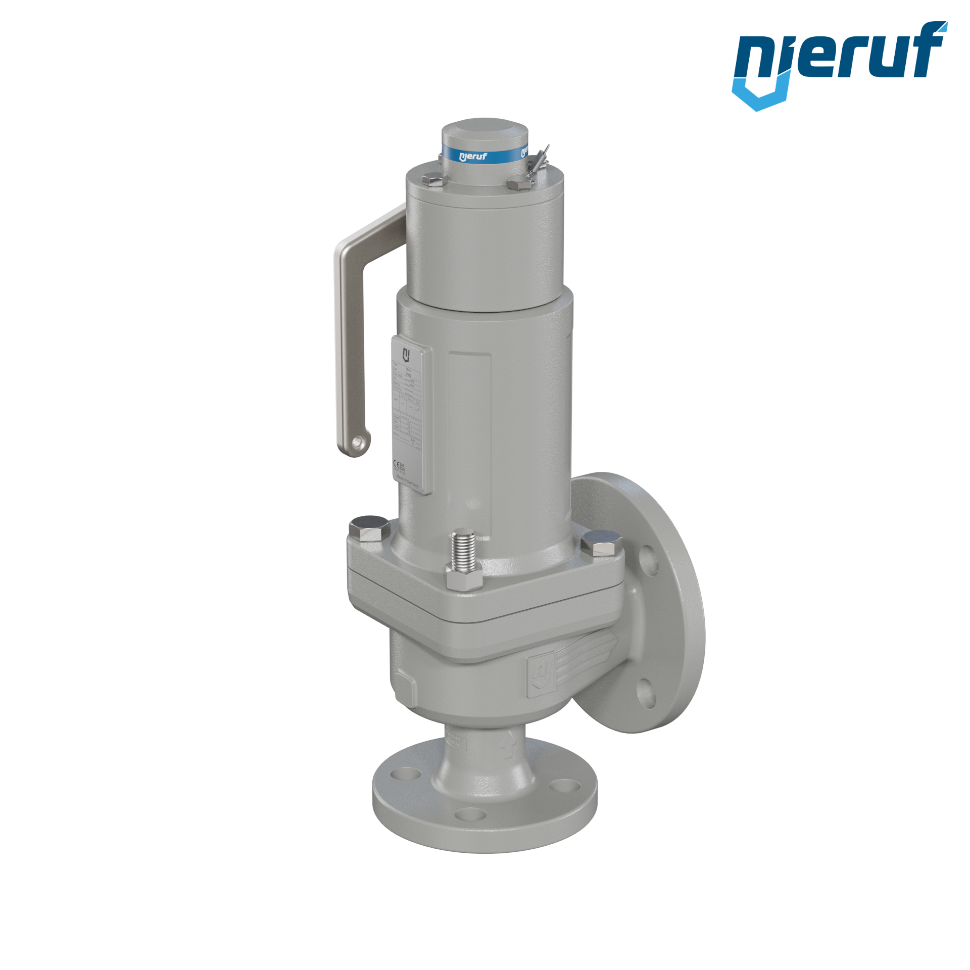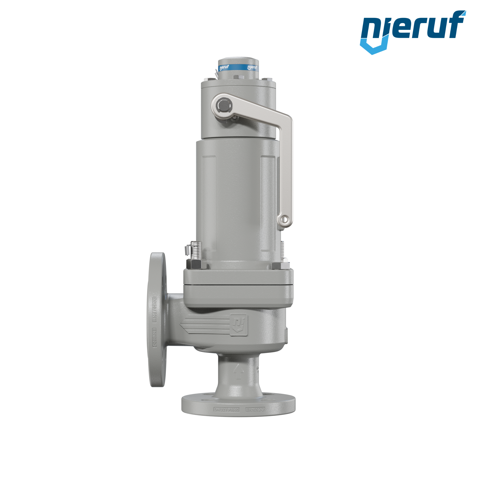 Zawór bezpieczeństwa kołnierzowy gazoszczelny DN32/DN50 SF06 z żeliwa sferoidalnego do płynnych i gazowych mediów DIN EN 5.3103 uszczelnienie EPDM zakres ciśnienia 0,2 - 40,0 bar z dźwignią podnoszącą