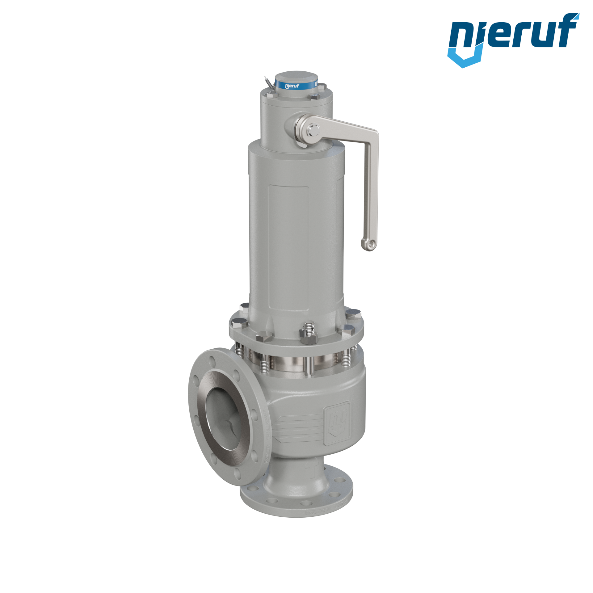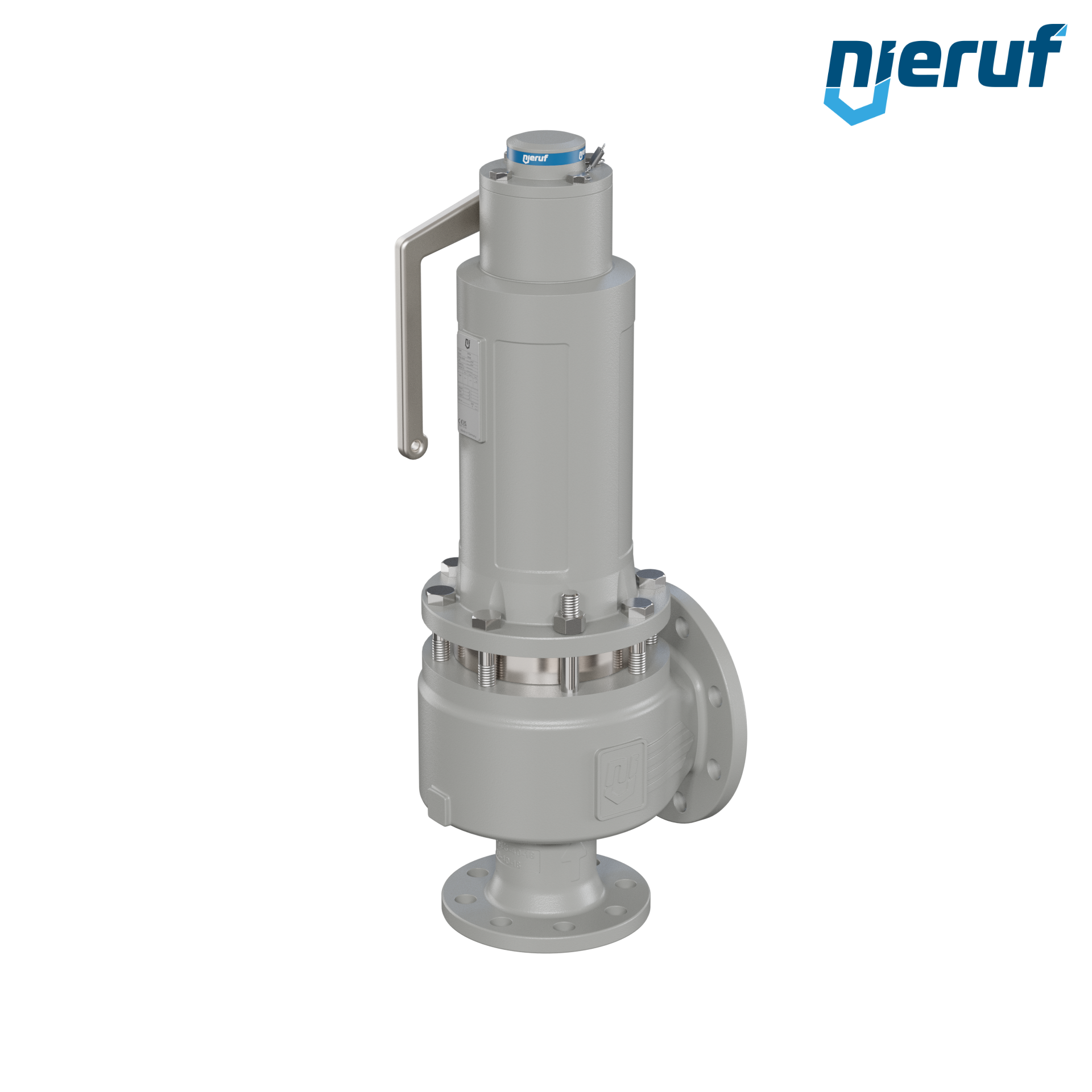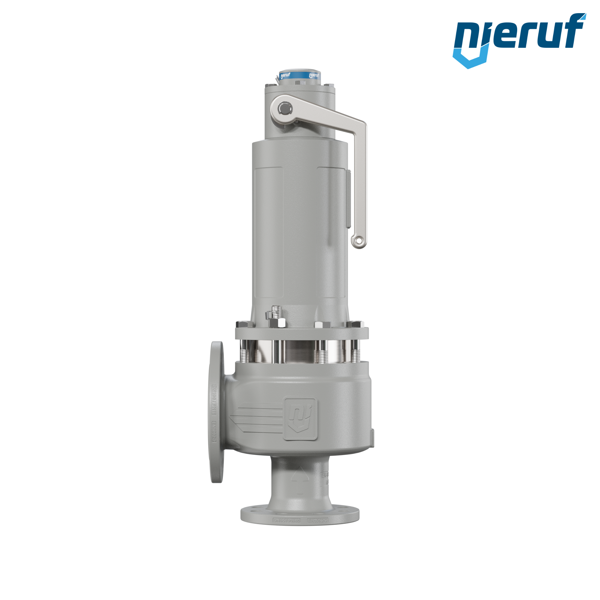 Zawór bezpieczeństwa kołnierzowy DN65/DN100 SF06, Pokrywa gazoszczelna i mieszek ze stali nierdzewnej FKM, z dźwignią podnoszącą