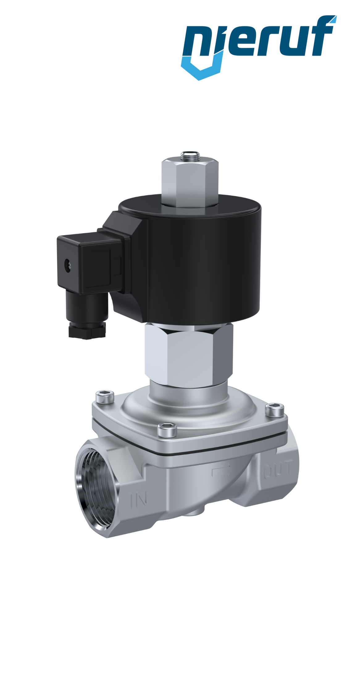 Zawór elektromagnetyczny G 3/4" cala ze stali nierdzewnej 1.4308 uszczelnienie EPDM NO - normalnie otwarty sterowanie wymuszone 24V DC do płynnych i gazowych mediów