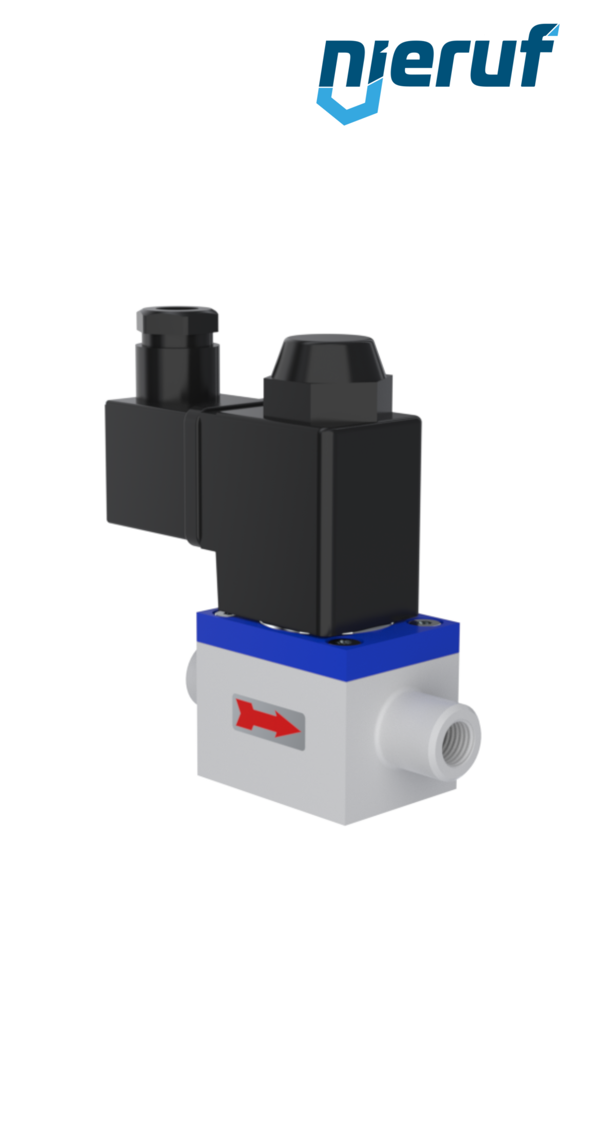 Zawór elektromagnetyczny PVC d16 DN4,0 uszczelnienie FKM sterowany bezspośrednio napięcie zasilania 24V DC ciśnienie 0 - 3,2 bar