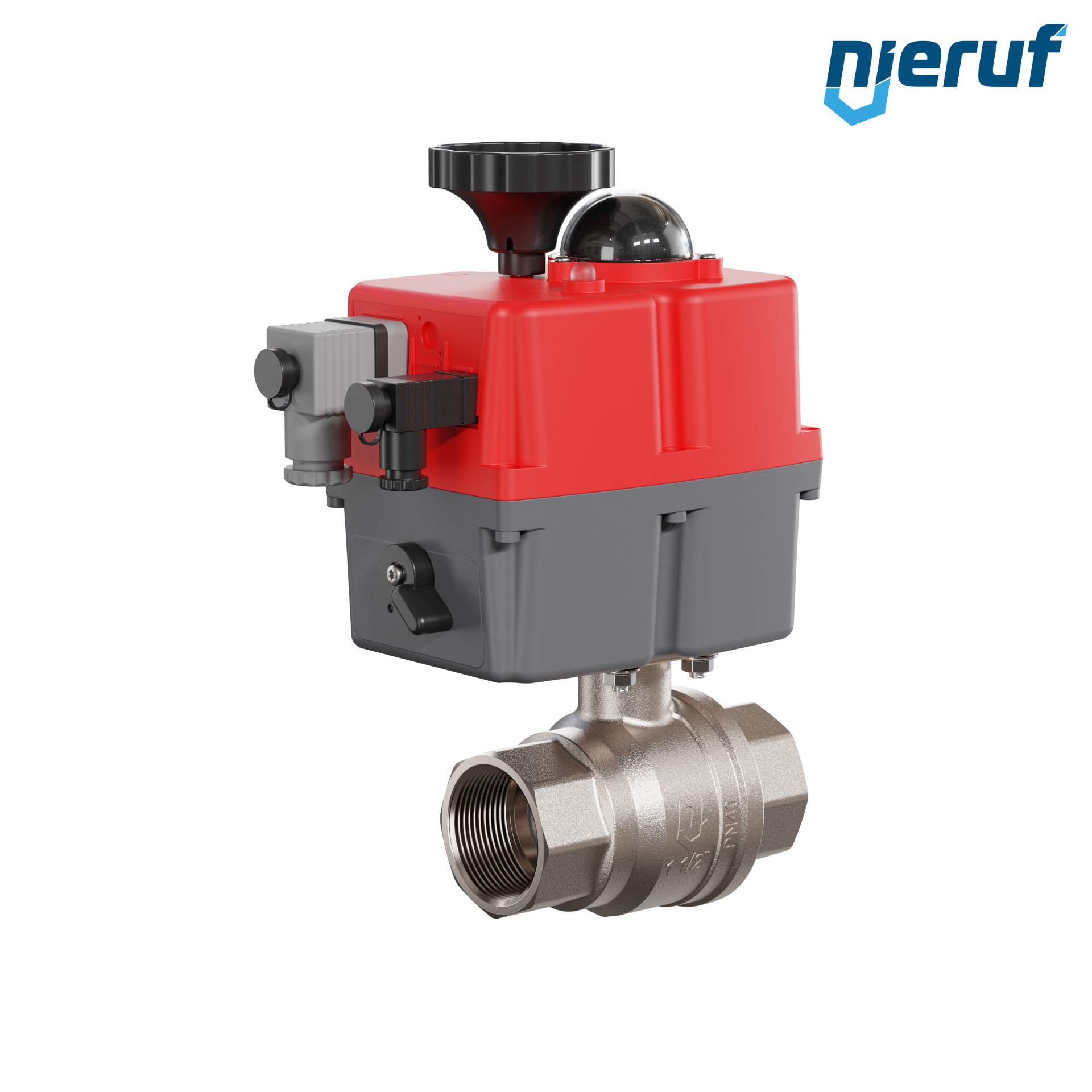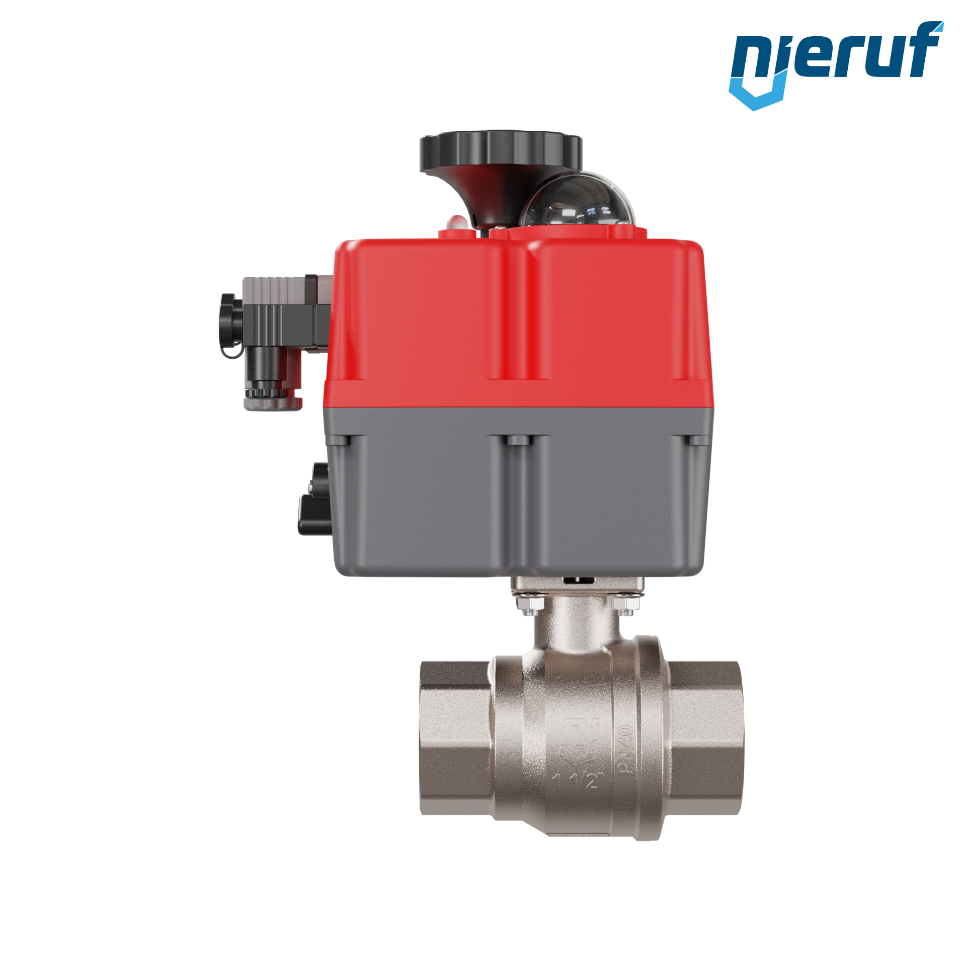 Zawór kulowy DN40 -1 1/2" cala mosiądz CW617N niklowany EK01 elektroniczny siłownik obrotowy S - seria S 24V AC/DC
