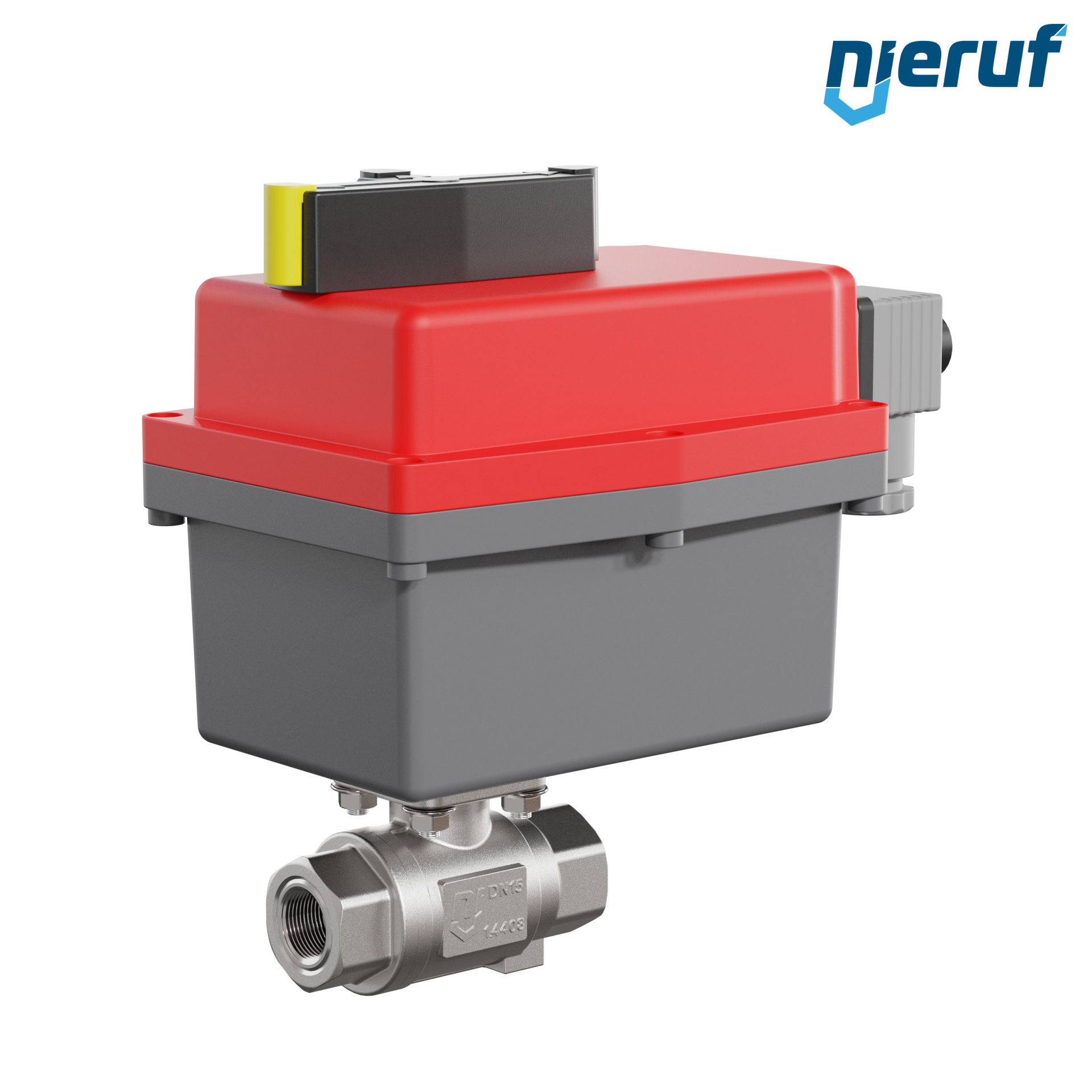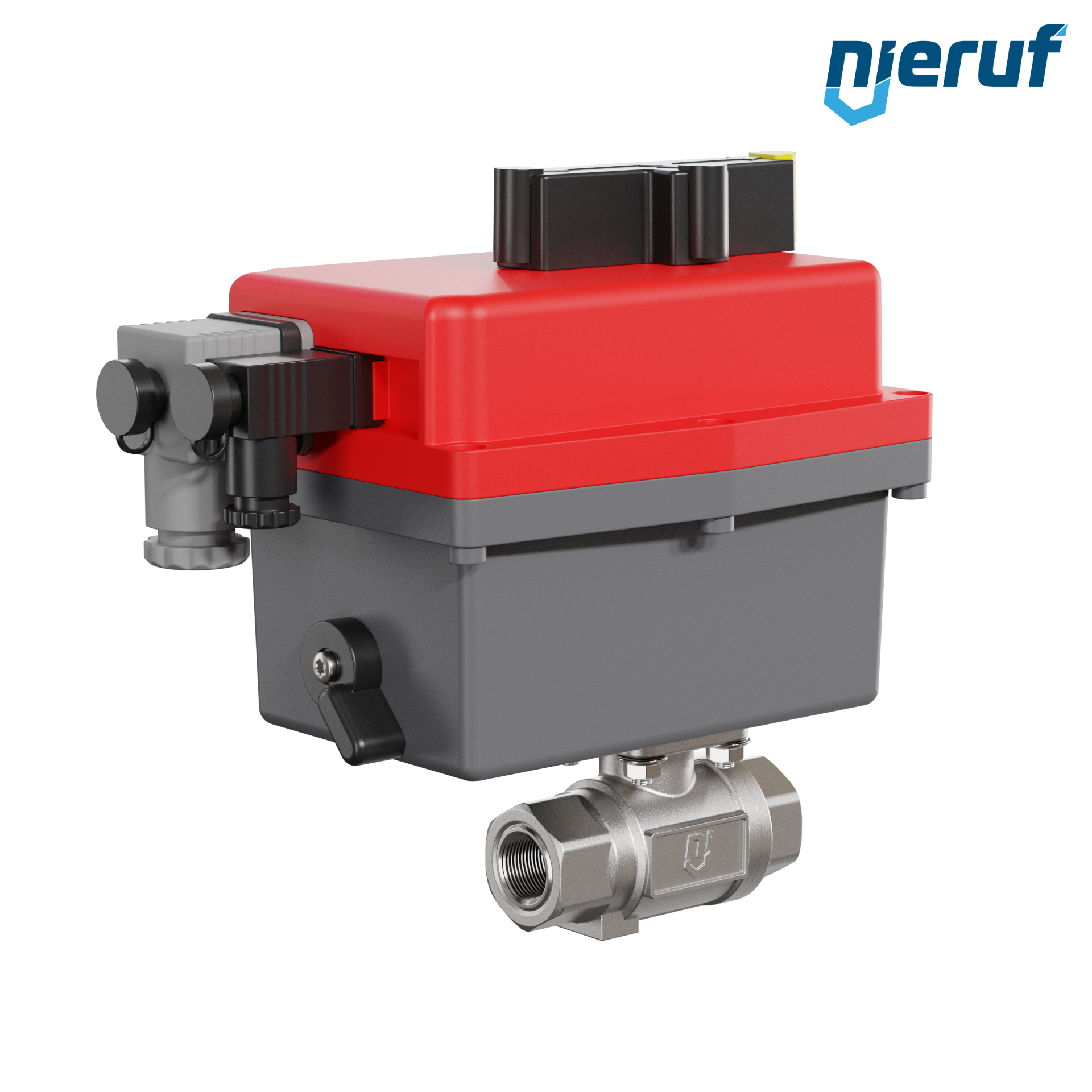 | Budowa | Dwuczęściowy mufowy zawór kulowy z siłownikiem elektrycznym |