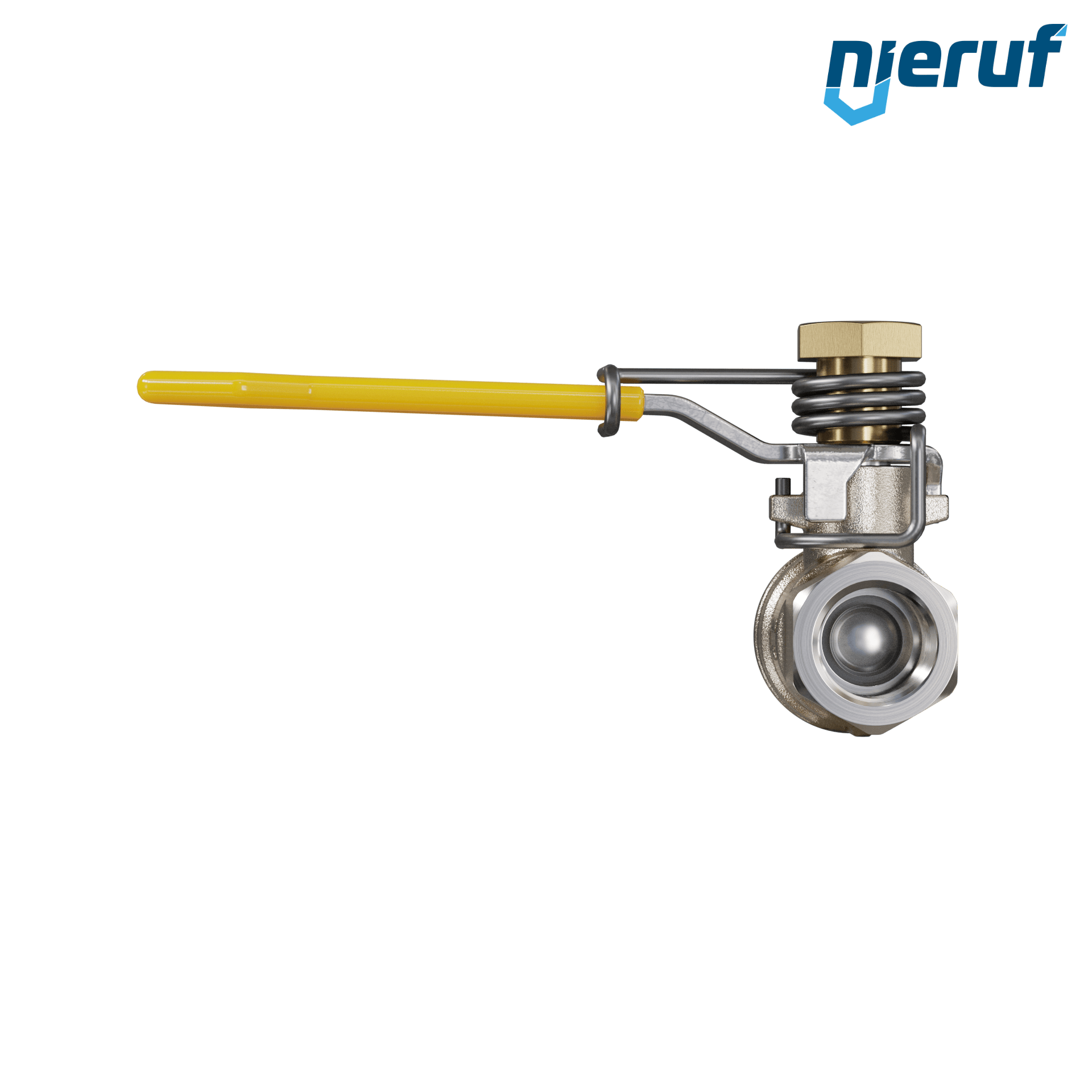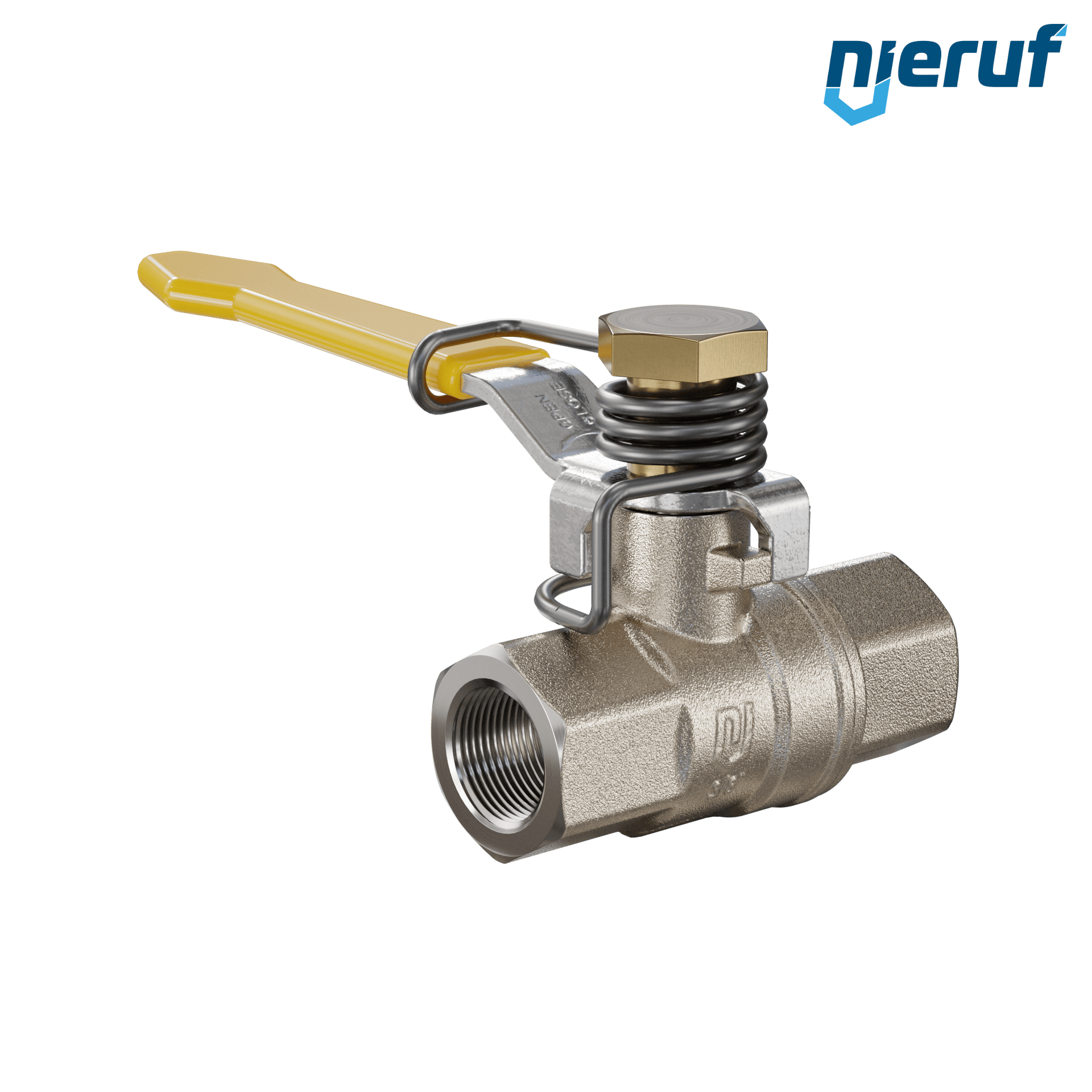 Ten wysokiej jakości mosieżny zawór kulowy ze sprężyną powrotną jest normalnie w pozycji zamkniętej. Otwarcie następuje pod wpływem siły sprężyny.