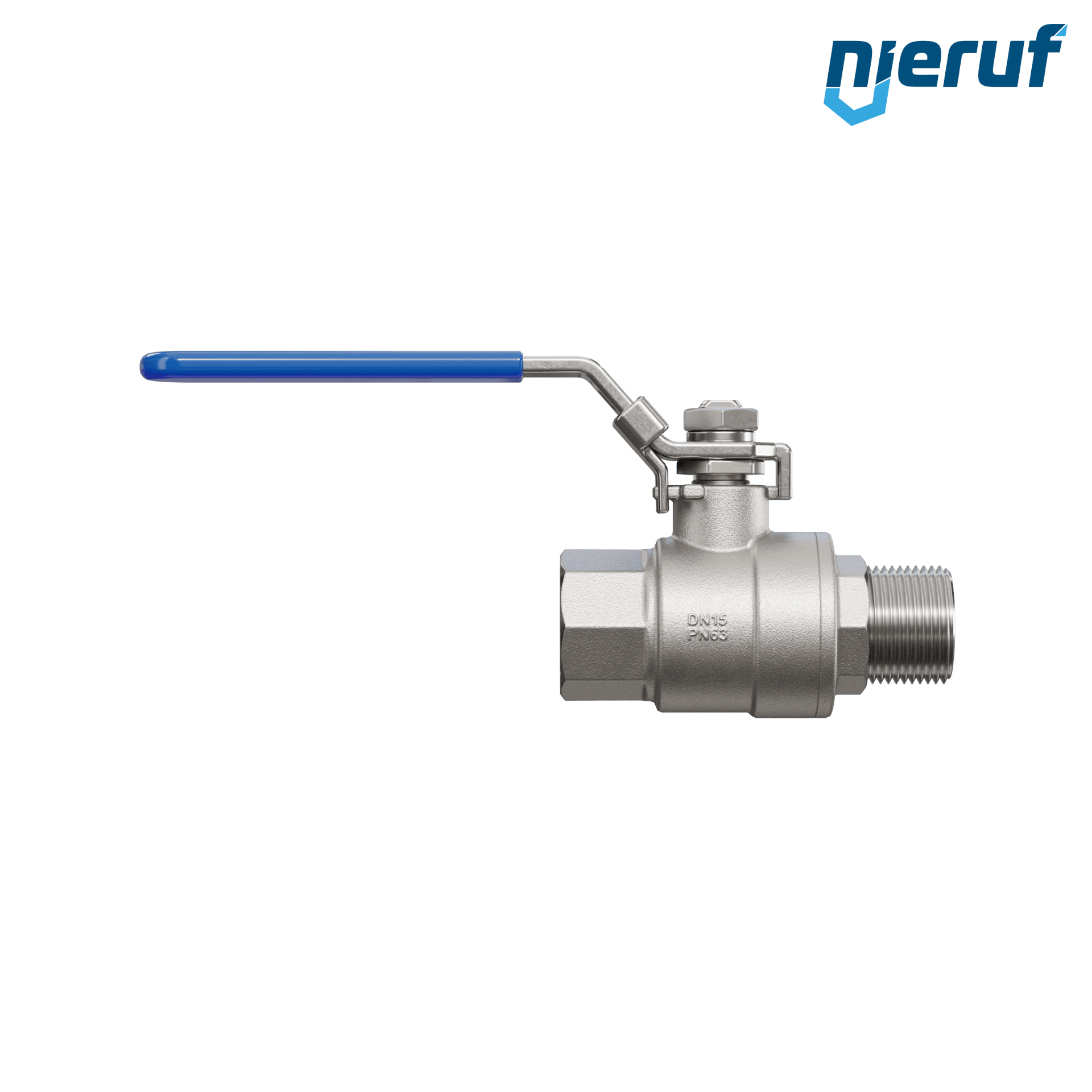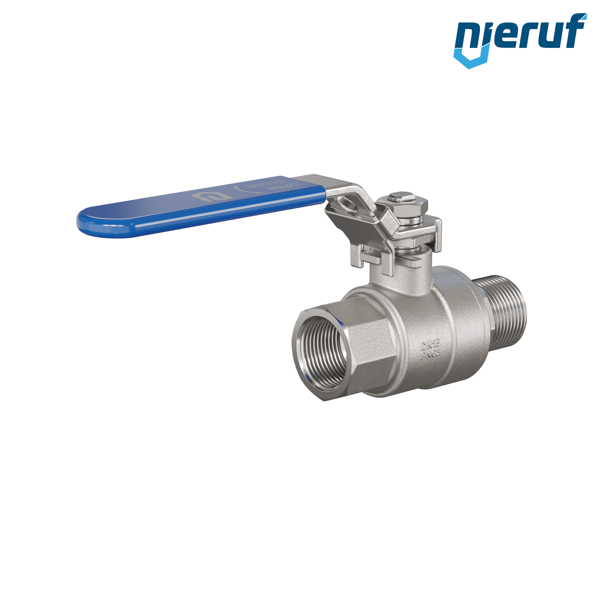 Ten wysokiej jakości zawór kulowy ze stali nierdzewnej składa się z dwuczęściowego korpusu z gwinten wewnętrznym i zewnętrznym.