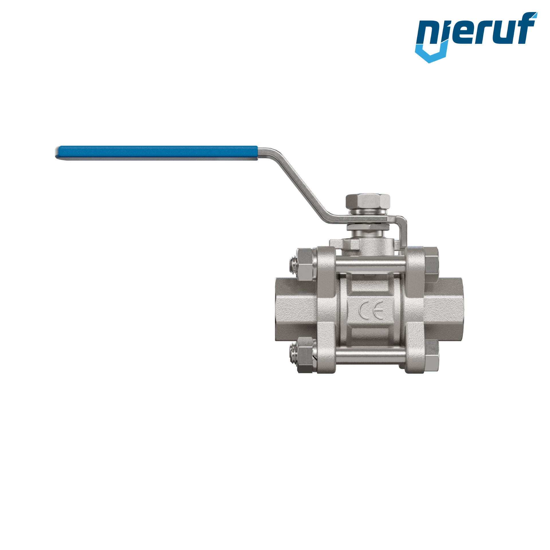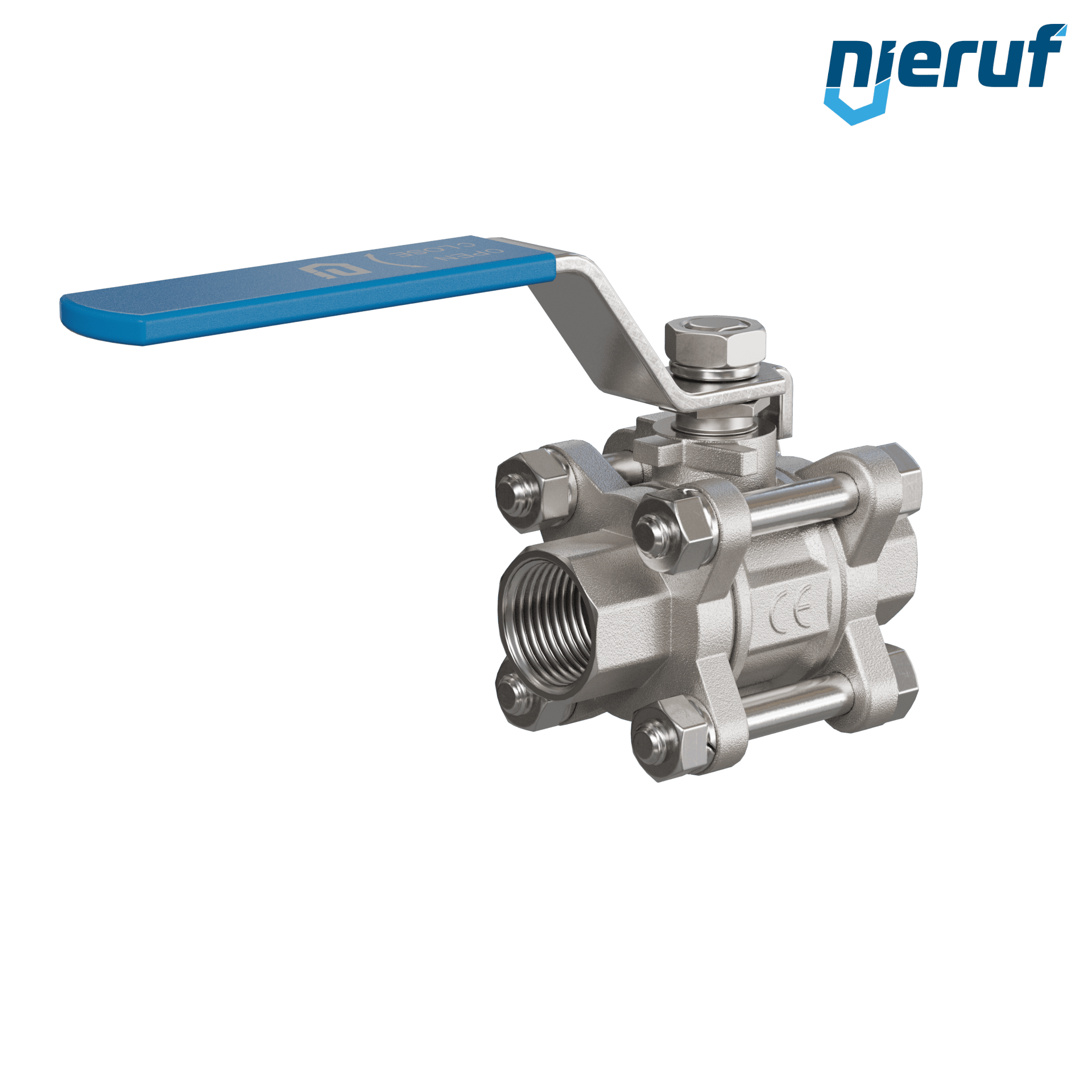 Ten wysokiej jakości zawór kulowy wykonany ze stali nierdzewnej składa się z trzyczęściowego korpusu, odpornego na wydmuchiwanie wału roboczego i regulowanej dławnicy. Ten zawór kulowy spełnia wymagania dotyczące dyrektyw dotyczących urządzeń ciśnieniowych, kategoria 0.